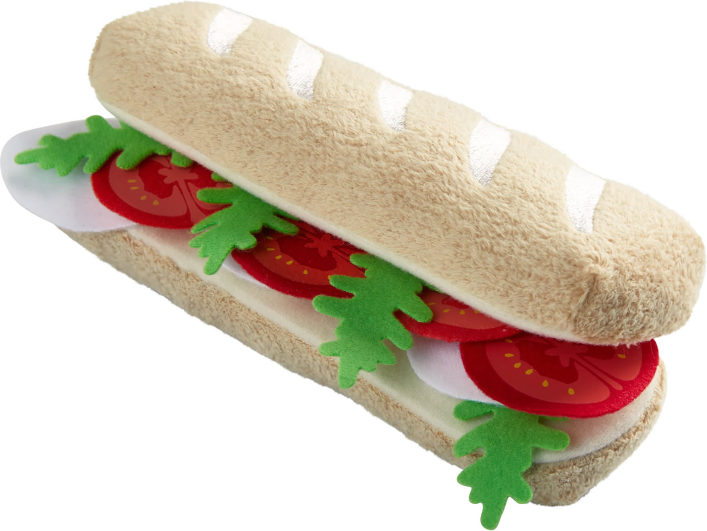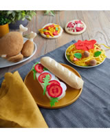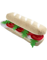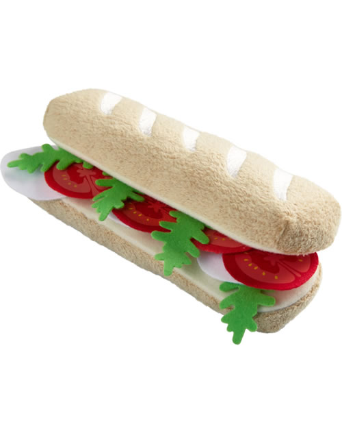 Garnie de rondelles de tomate, de tranches de mozzarella et de feuilles de roquette, cette baguette donne envie de la dévorer ! Le sandwich de la série Biofino de HABA, si bien réalisé que l‘on dirait un vrai, deviendra vite le jouet préféré et sera de tous les jeux : à la cuisine, à la marchande, et même à table « pour de vrai » ou en pique-nique au jardin. Les enfants adorent regarnir leur sandwich.