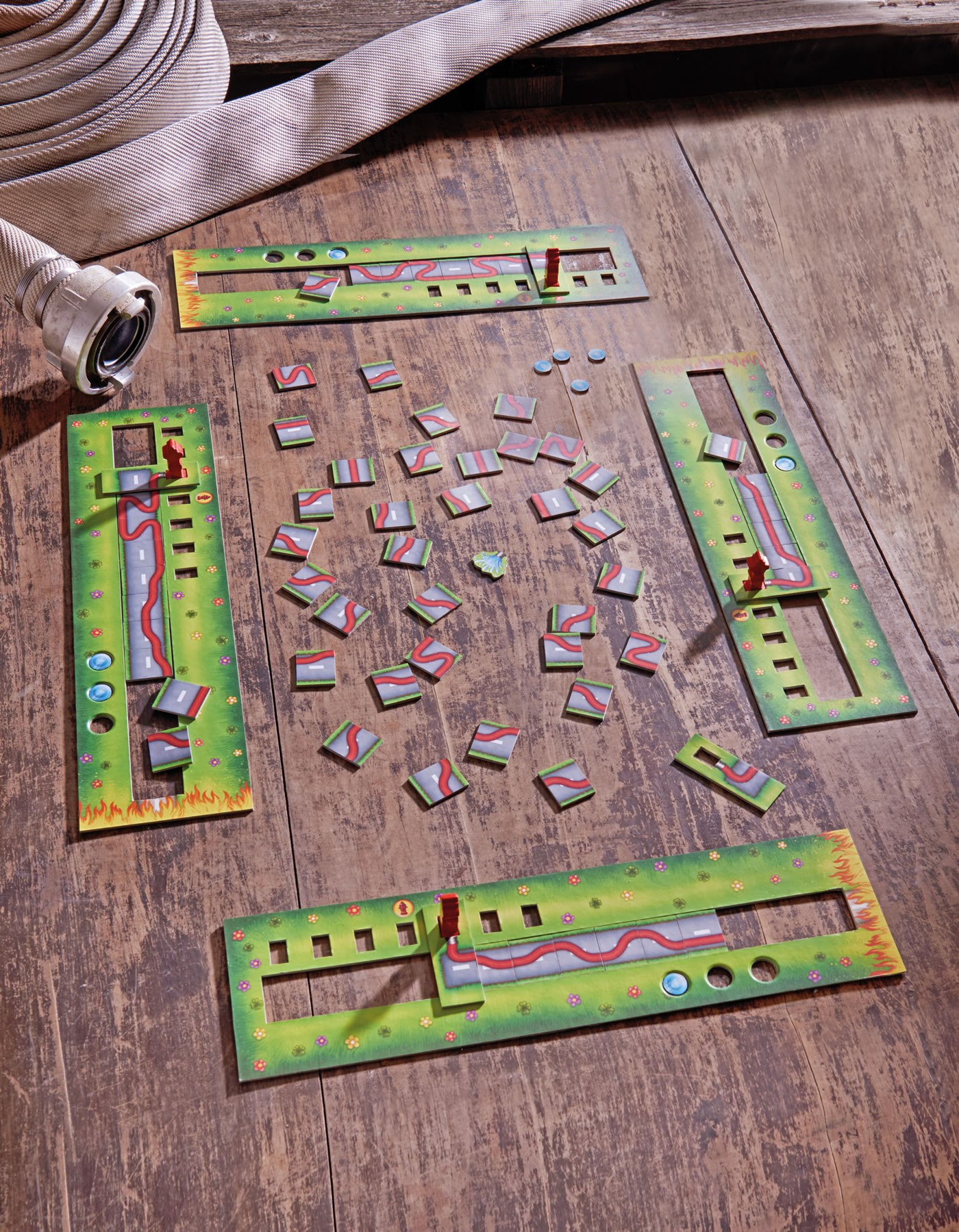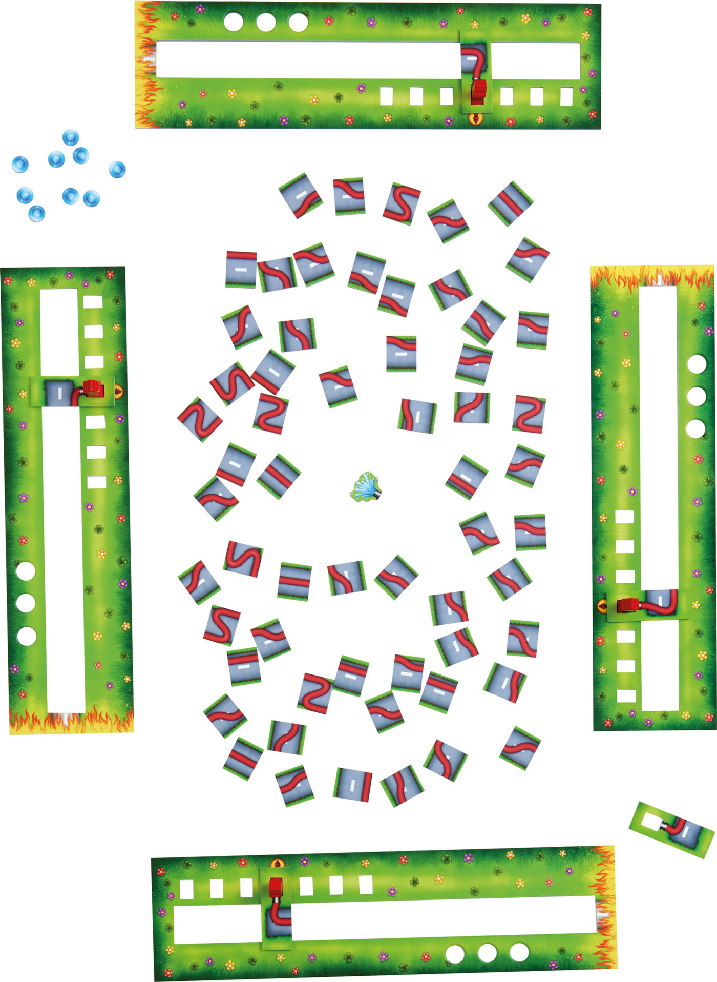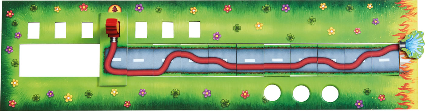 Pin-pon, pin-pon, voilà les pompiers ! Ils viennent éteindre les bottes de paille en feu sur le champ du fermier Rudi. Les joueurs peuvent-ils les aider ? Pour cela, ils ne doivent pas s'emmêler les tuyaux ! Ils doivent disposer les plaquettes de morceaux de tuyau de façon à dérouler correctement et rapidement leur tuyau depuis la bouche d'incendie jusqu’au feu. Le joueur qui y parvient reçoit une médaille de pompier en récompense. Et le premier joueur qui remporte trois médailles gagne la partie.