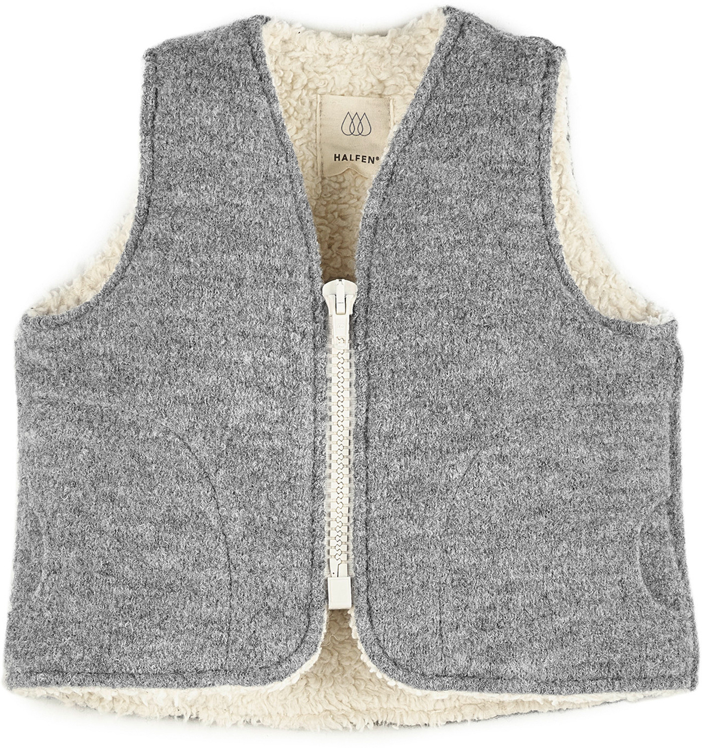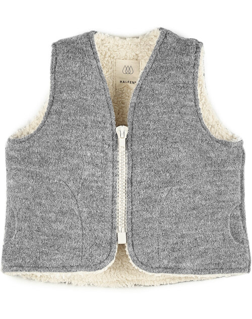 Halfen Gilet avec Doublure teddy laine vierge GOTS gris K2W15