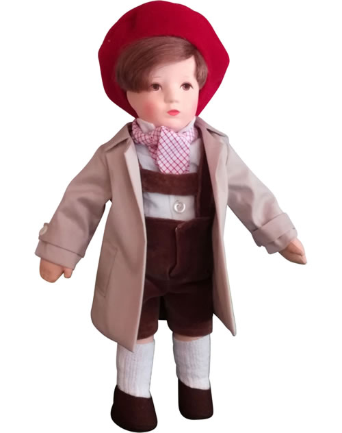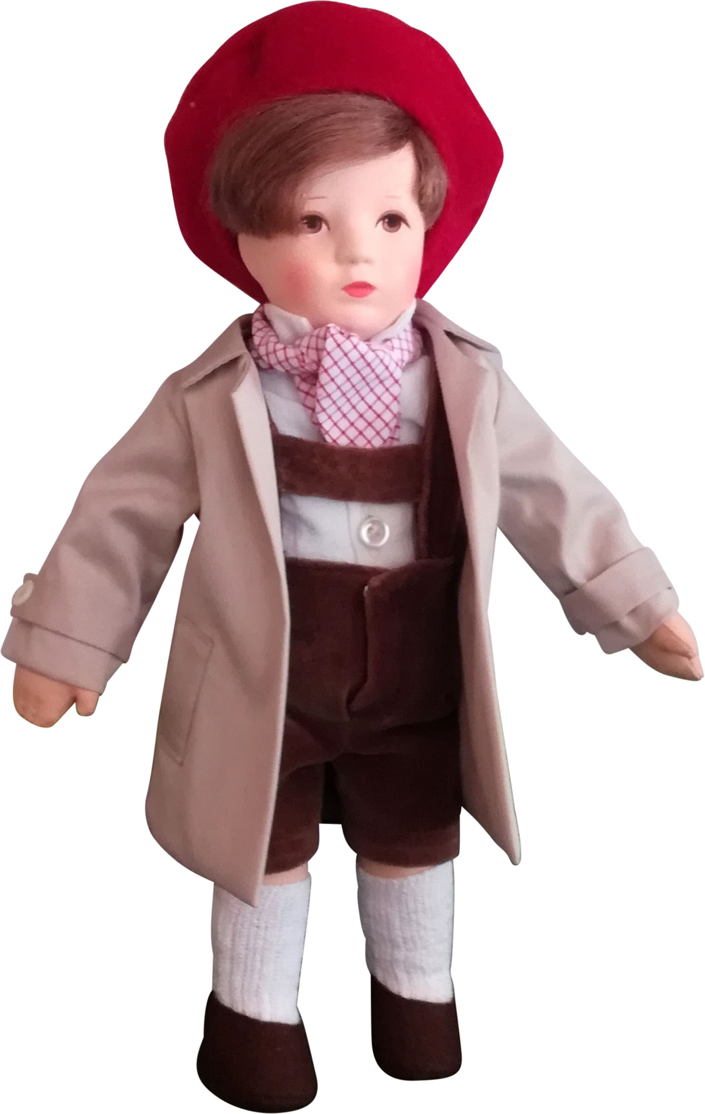 The reduced Friedebald head made from paper machée is painted by hand in typical Käthe Kruse tradtion.