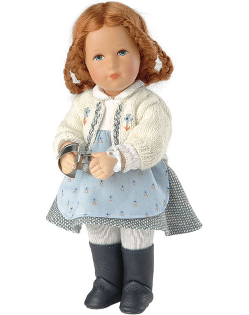 Le mignon petit Jette invite tous les collectionneurs de Käthe Kruse Poupées un à cuire des biscuits de Noël avec elle. Pour cela, elle dispose d'une petite forme de champignon Backausstecher avec elle. Jette est de 28 cm de hauteur et le corps de la poupée classique est avec des cheveux cerf et de renne en peluche laborieusement à la main. Tête de la poupée est faite de polystyrène et peint à la main avec amour. Particulièrement agréable briller les yeux bleu glacier. Le Jette vrais cheveux coiffés a un branché raffinés ses cheveux tressés. Jette vêtue d'une robe d'hiver avec des fleurs bleues sur une jupe blanche et un chandail avec un motif floral brodé coûteux. Collants blancs et des bottes d'hiver noir pour compléter leurs vêtements chauds pour l'hiver.