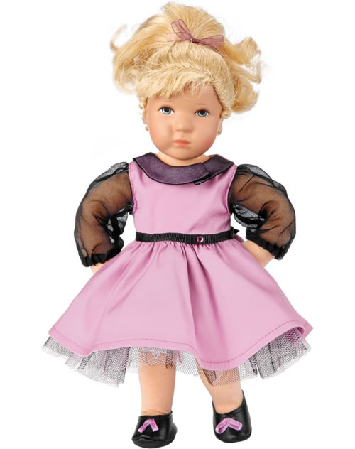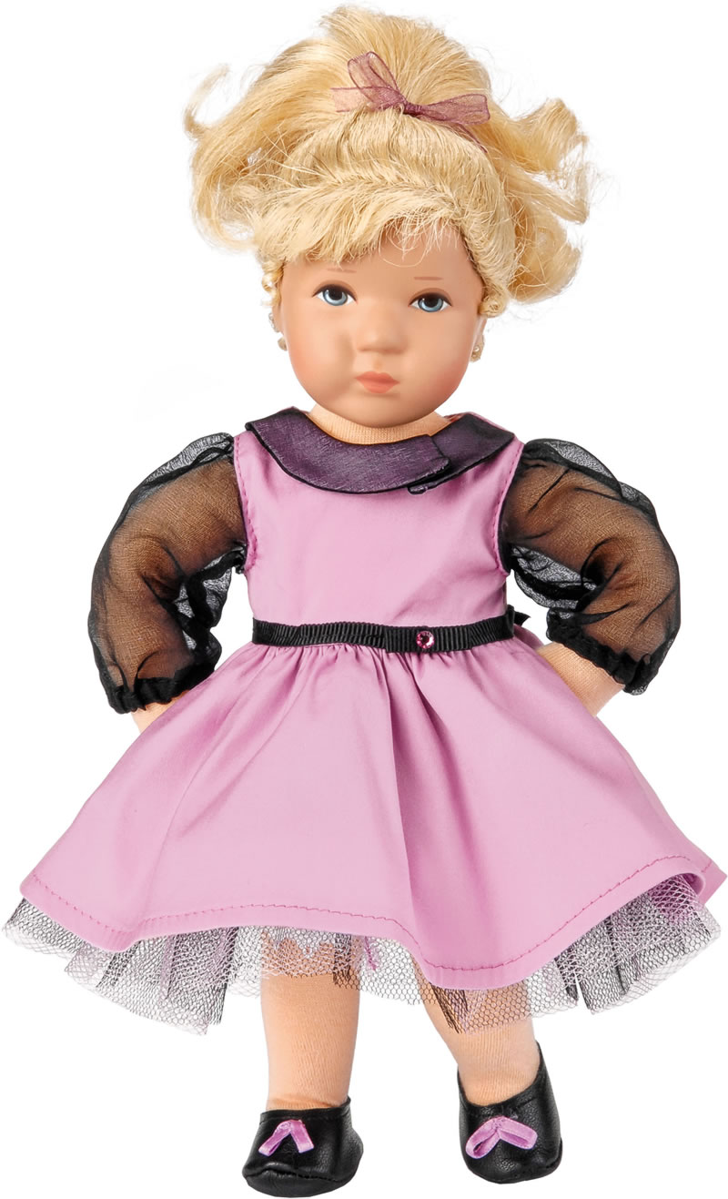 La poupée Club édition 2014/2015 Däumlinchen Bine porte le regard des années 50. La robe pourpre oscillant a un col et des manches en soie. Particulièrement est la plus décorée avec une ceinture de strass étincelant. Le ludique, garnis de pourpre chaussures de rubans qu'ils font pour Bine rapide. Bien sûr, elle a une queue de cheval.