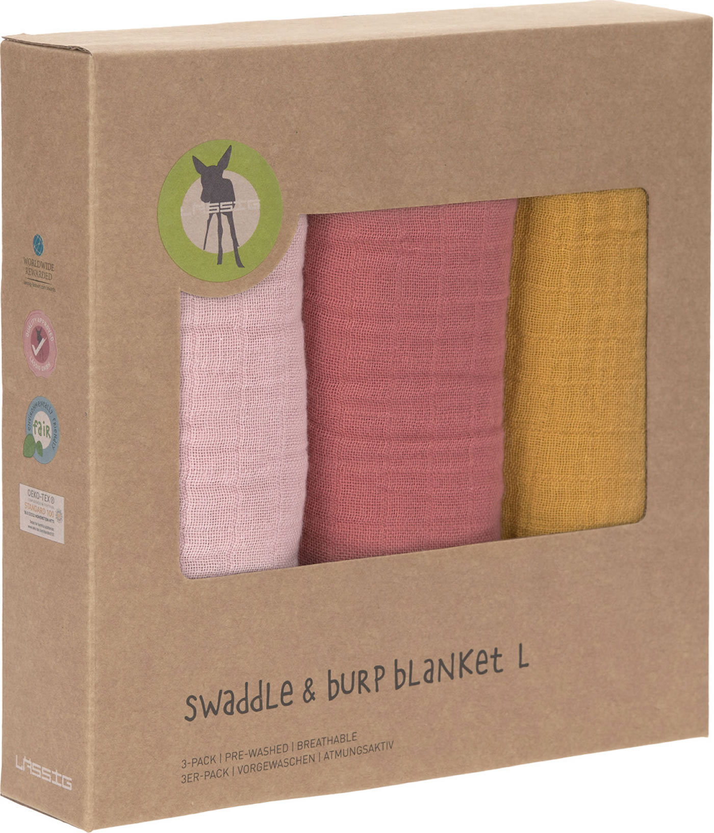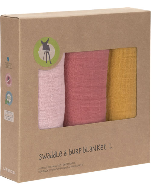 Lässig Swaddle & Burp Blanket L rose, rosewood, mustard