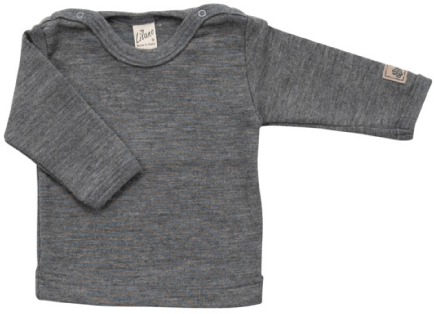 Chemise douillette à manches longues en laine vierge et soie pour bébés et tout-petits de LILANO. Un détail pratique sont les boutons-pression au niveau des épaules, grâce auxquels il est plus facile à mettre et à enlever. Le matériau de haute qualité écologique du vêtement a un effet positif sur le climat de la peau et garantit un port confortable.