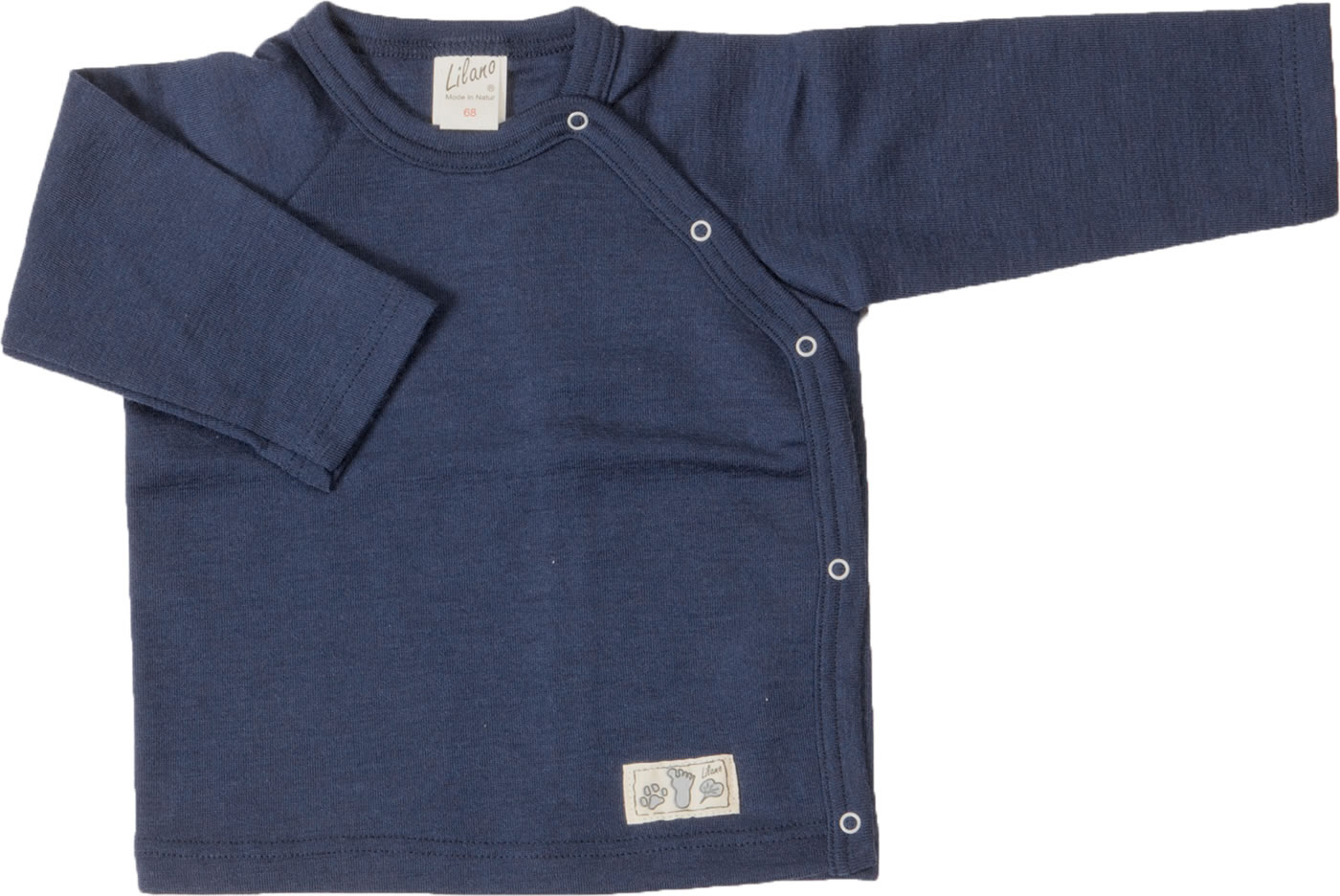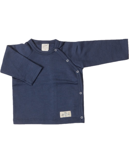 Chemise douillette à manches longues avec boutons latéraux par LILANO. La douce matière naturelle en laine vierge et soie est particulièrement agréable sur la peau de bébé.