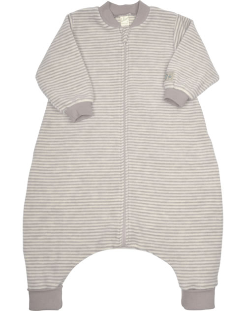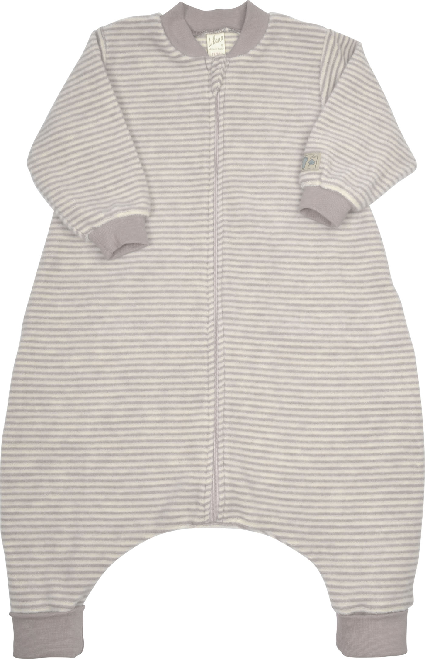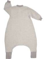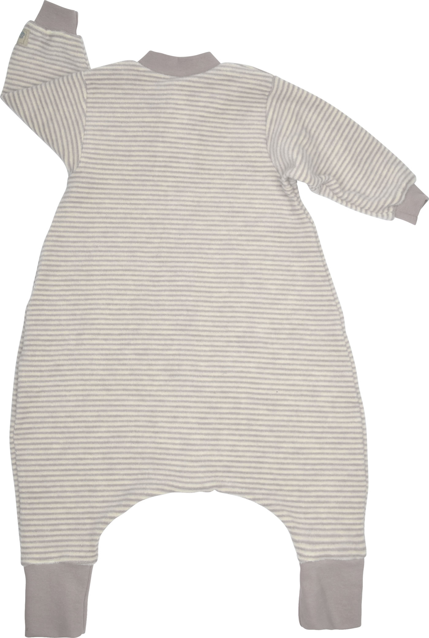 Gigoteuse douce à rayures blanches et grises avec bras et jambes longs en laine vierge LILANO. Des poignets séparés pour les manches et les jambes en gris complètent le beau look du compagnon de sommeil. Il y a une mentonnière souple au bout de la fermeture éclair. Le col montant en coton doux bleu est également un joli détail. Le matériau de haute qualité écologique du vêtement a un effet positif sur le climat de la peau et garantit un port confortable.