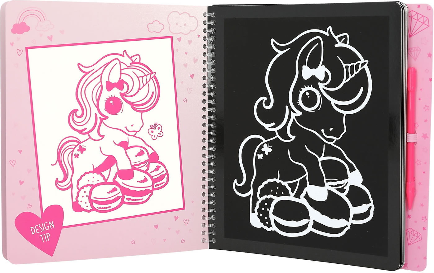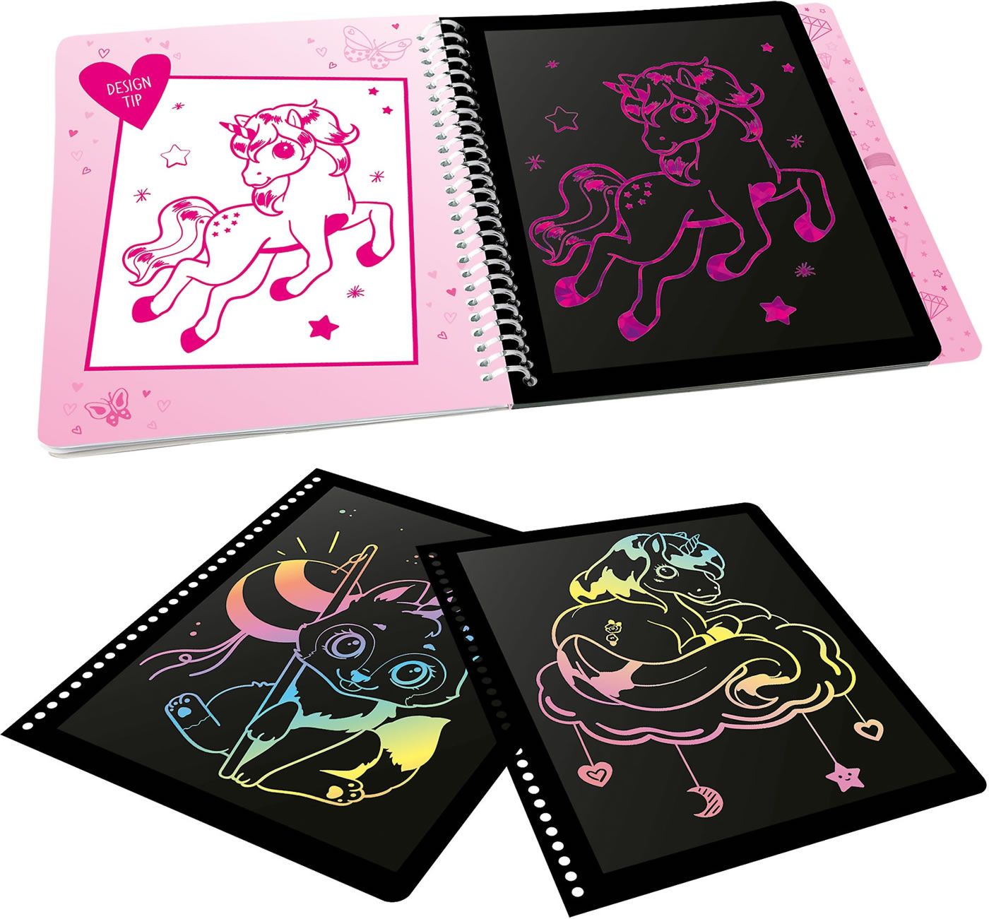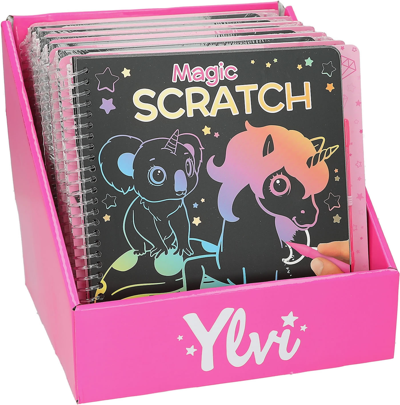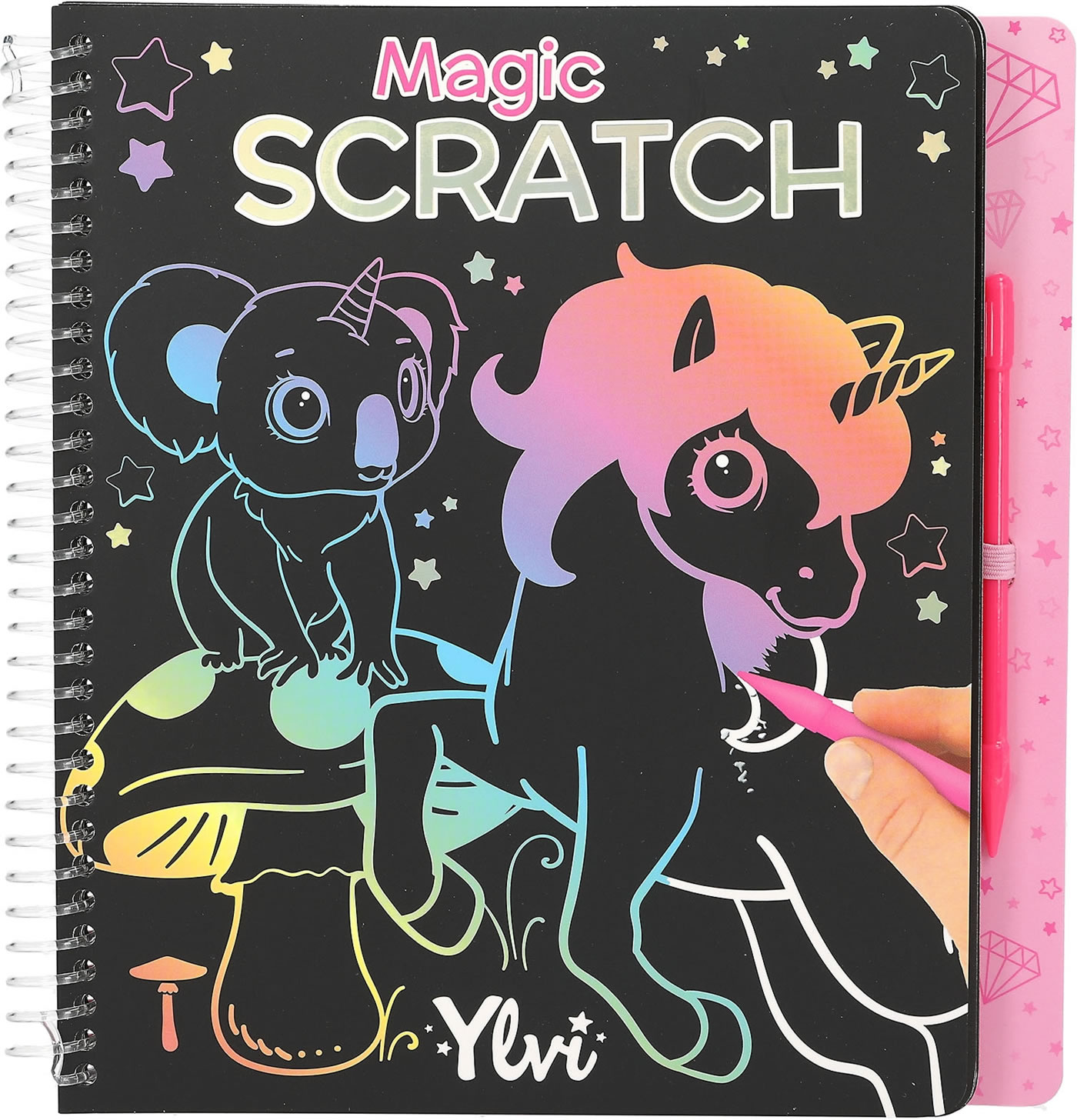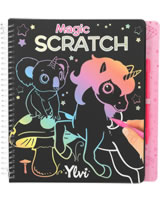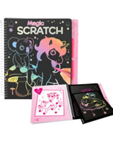 A magical color spectacle: In Magic Scratch by Ylvi and the Minimoomis, a colorful world full of unicorns and other cute creatures is created step by step on the black pages with every stroke of the accompanying scratching pen. 20 pages, spiral bound.
