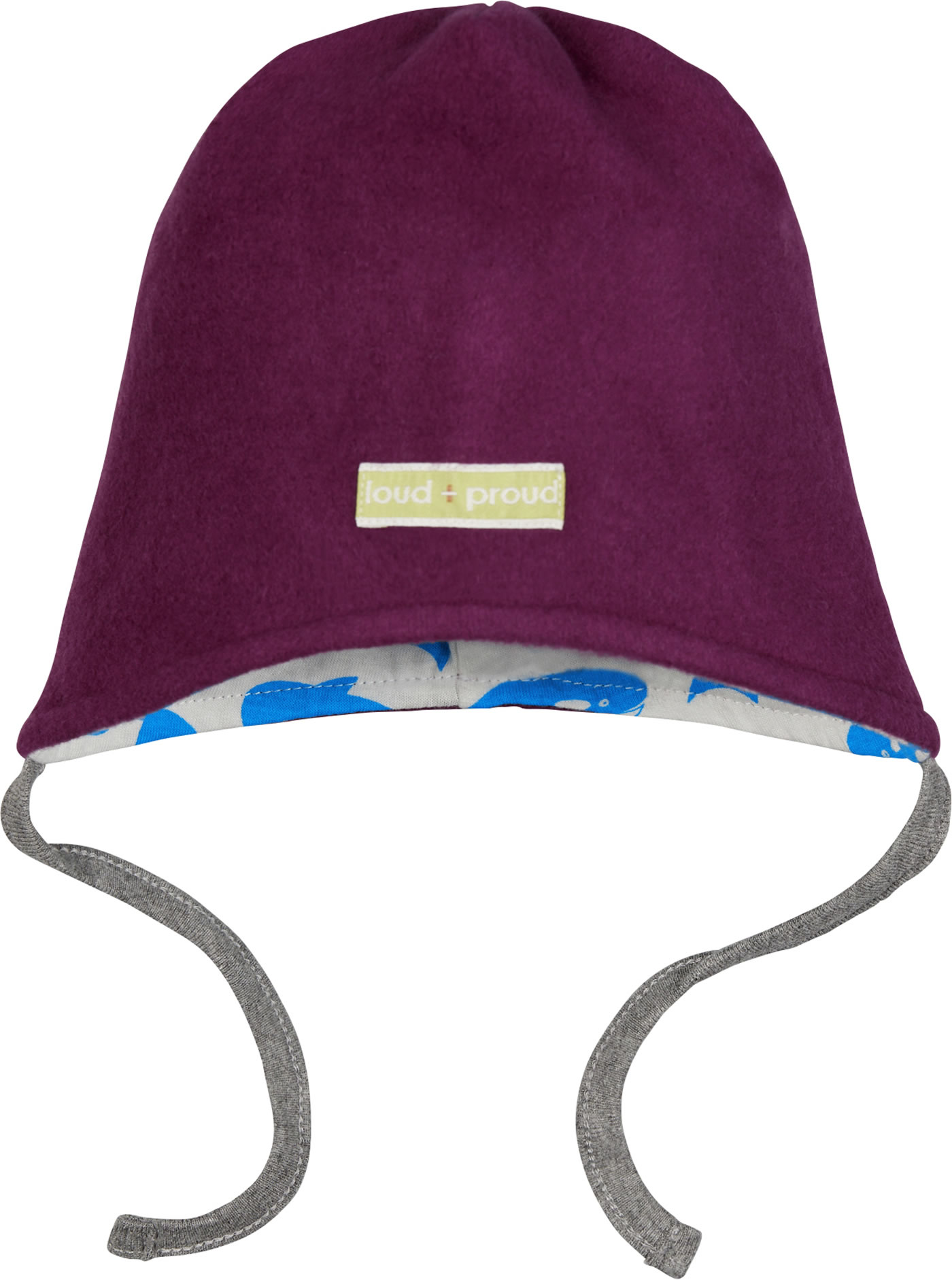 loud+proud Chapeau réversible fleece POLAR BEARS AND ORCAS plum