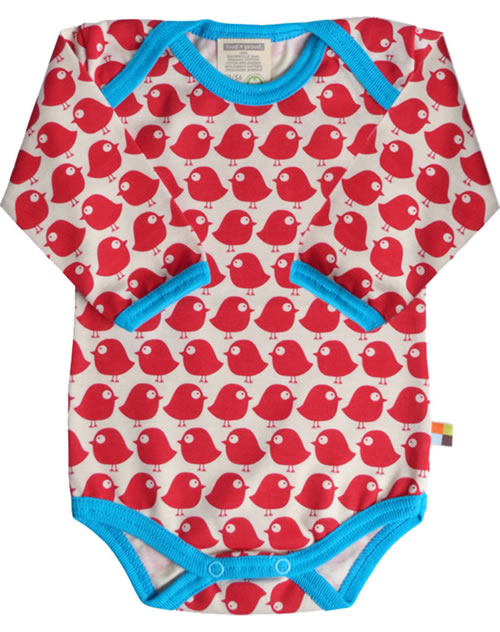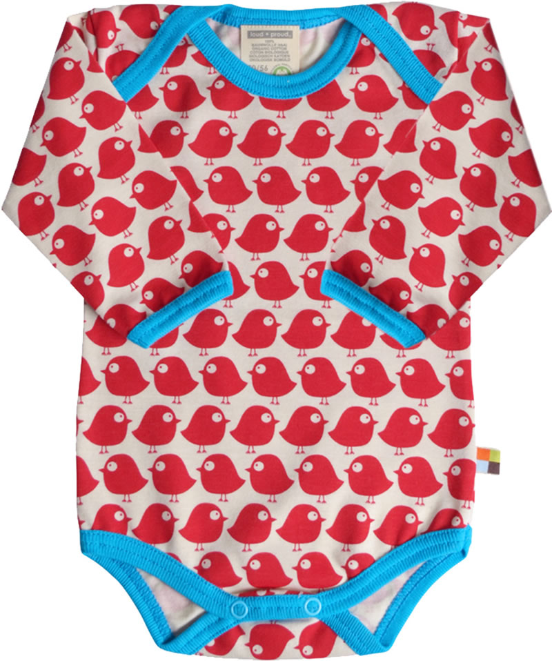 Confortable body à manches longues avec des oiseaux sur toute la surface de coton doux de LOUD + PROUD. La petite barre de boutons dans l'étape d'enroulement et de rendre le col et descendre un jeu d'enfant.