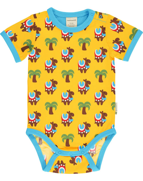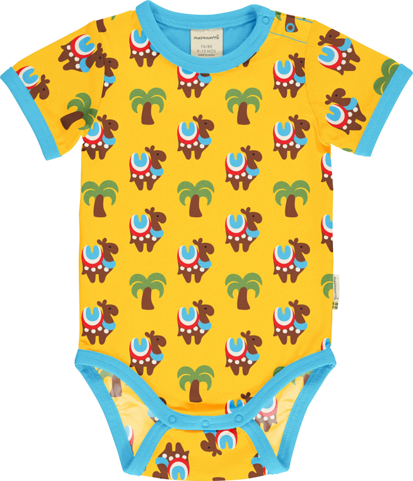 Maxomorra Body pour bébé manches courtes CAMEL CARAVAN jaune/bleu GOTS