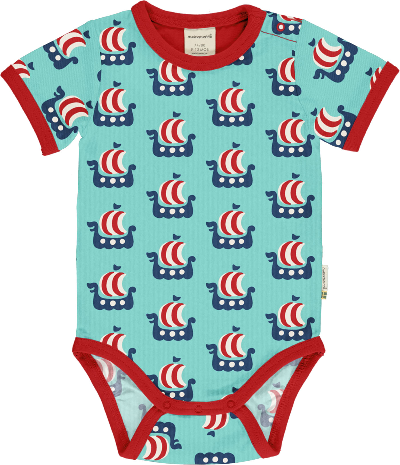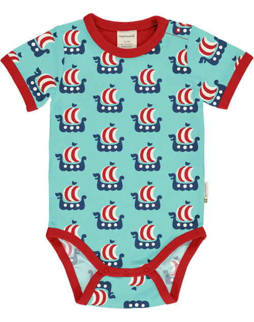 Maxomorra Body pour bébé manches courtes VIKING SHIP turquoise