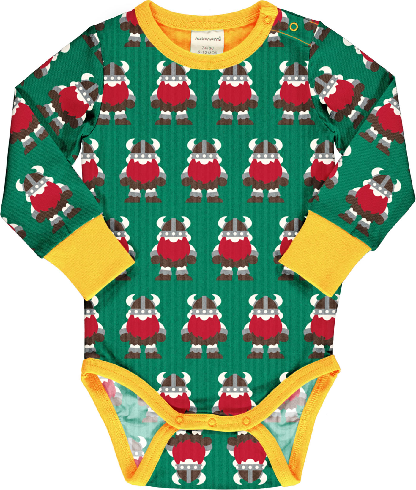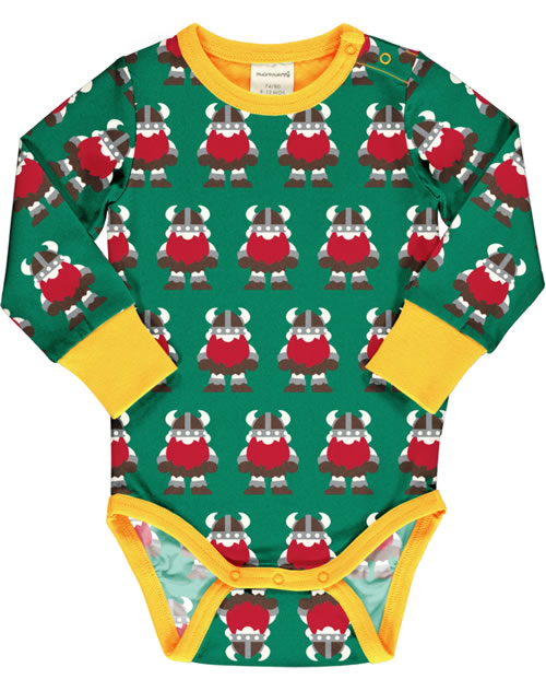 Maxomorra Body pour bébé manches longues CLASSIC VIKING vert/orange