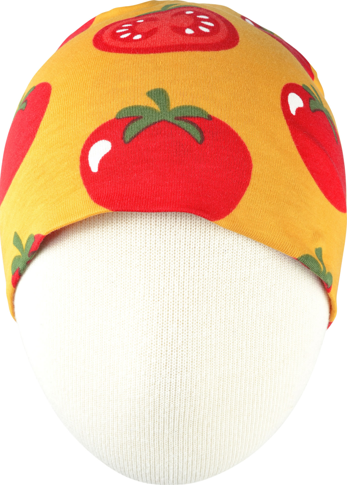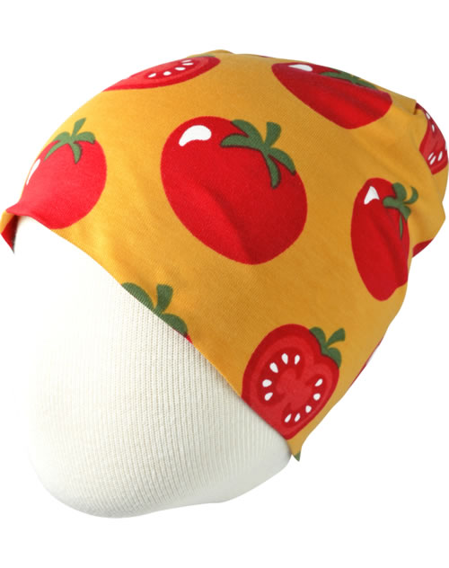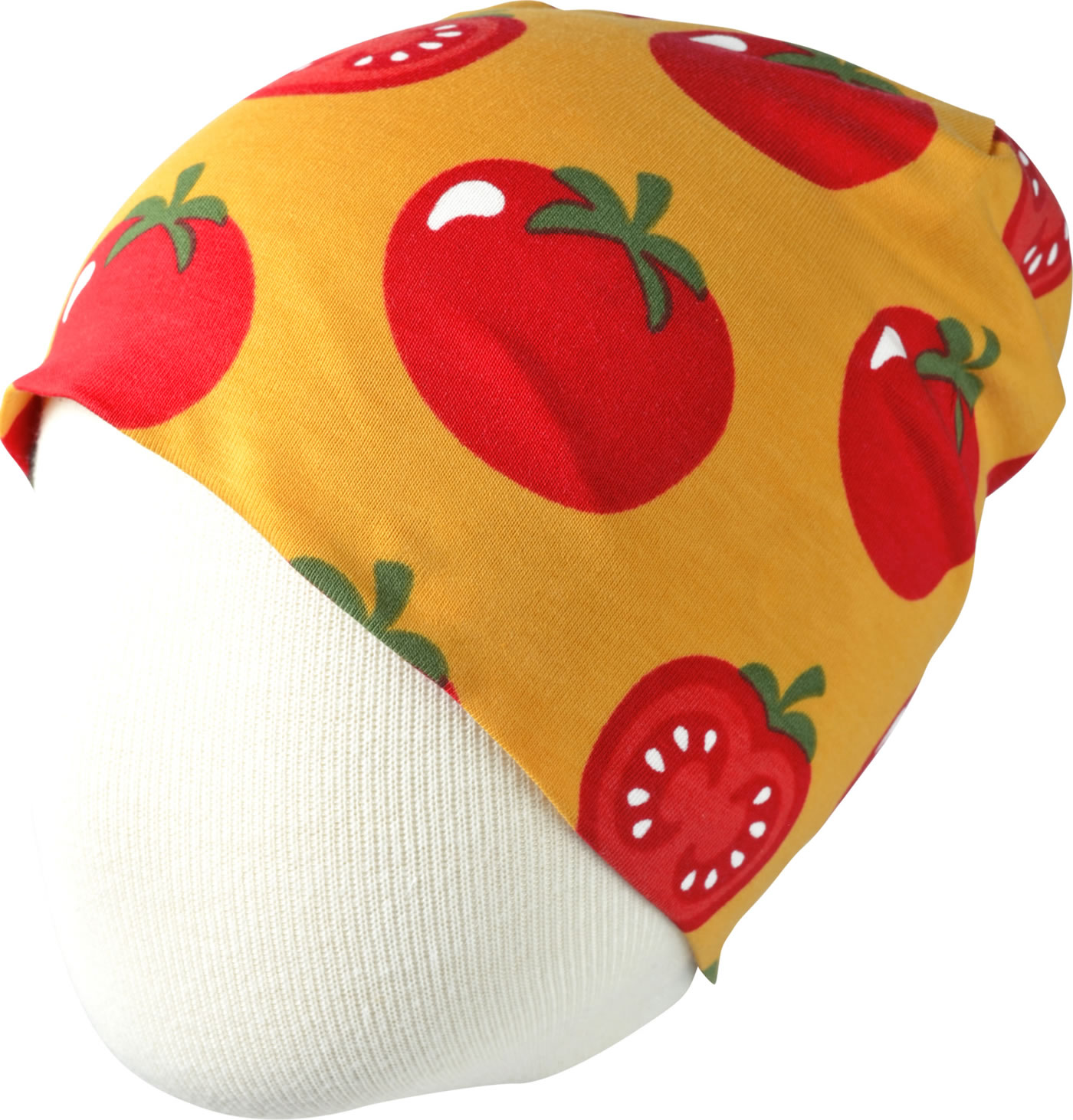 Sehr schöne Mütze. Toller Stoff. Perfekt für meine Tichter, die Tomaten liebt. So ist sie im grauen Herbst schon von Weitem zu sehen