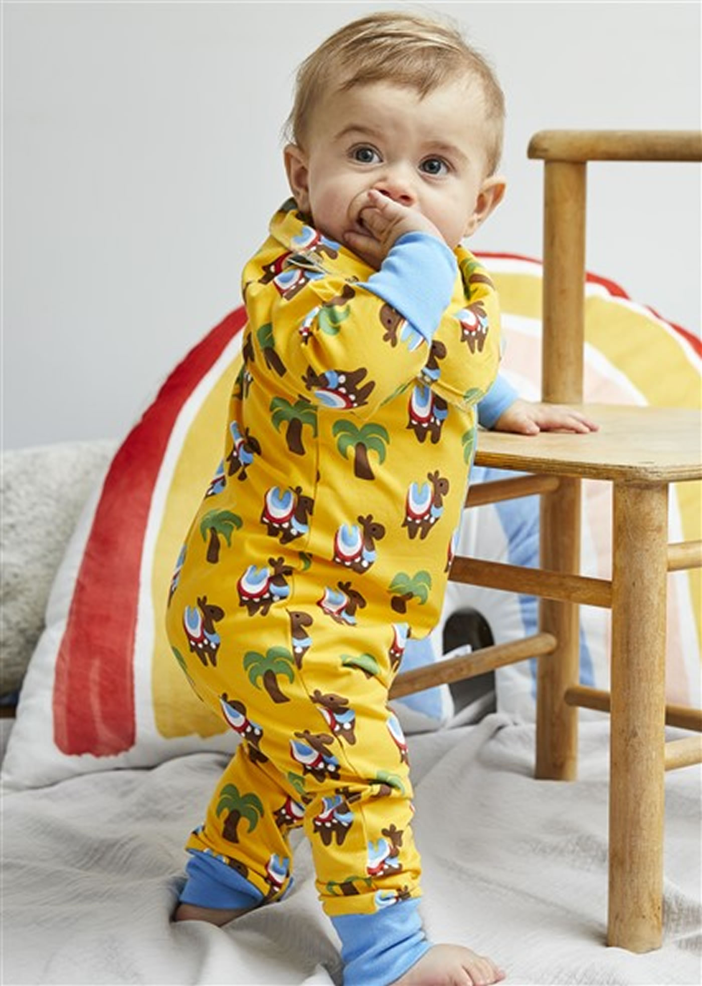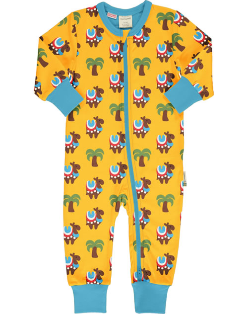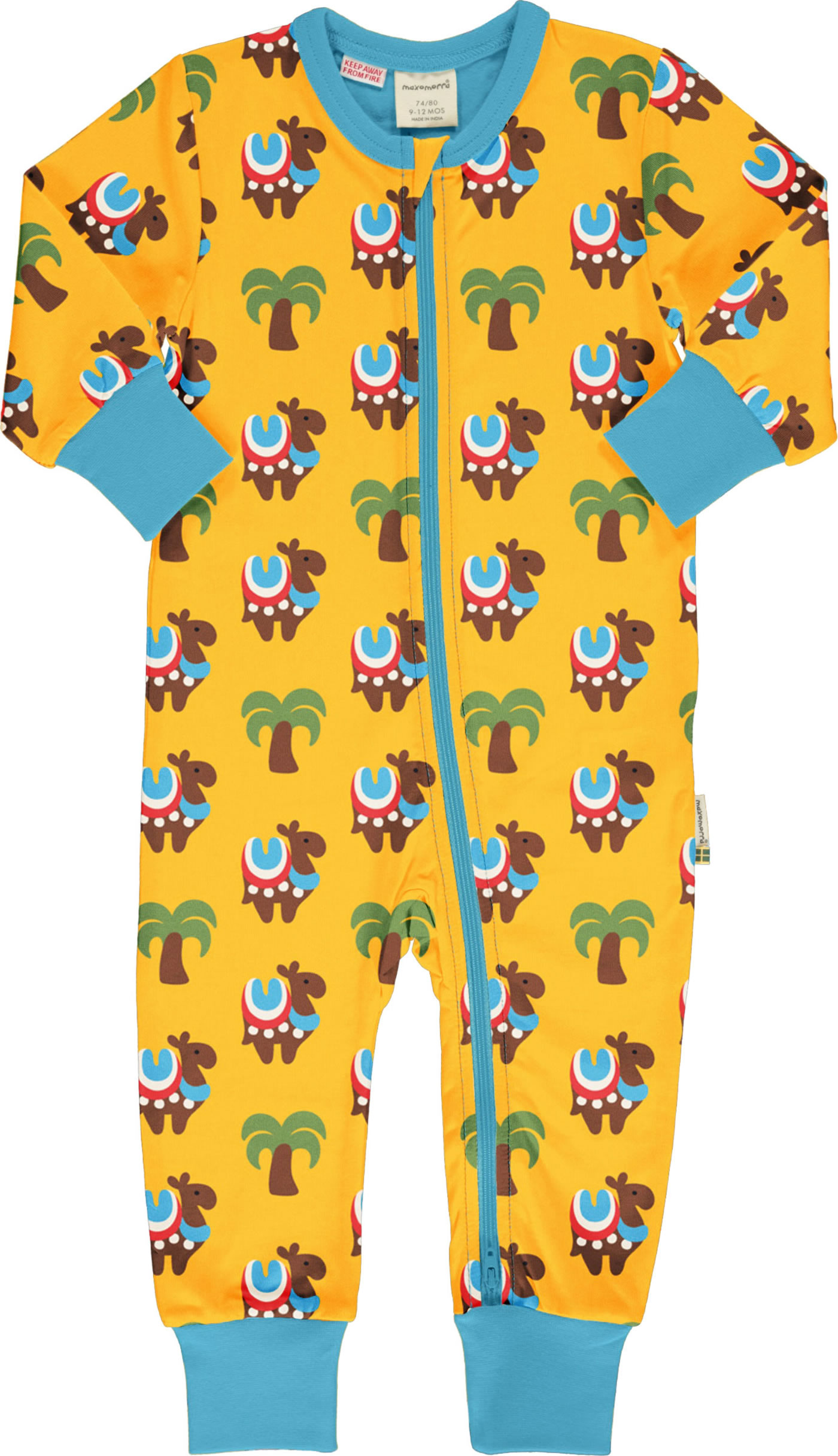 Maxomorra Grenouillère CAMEL CARAVAN jaune/bleu GOTS
