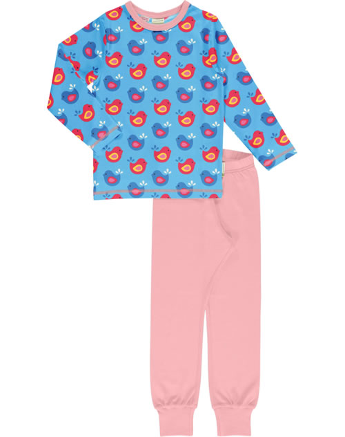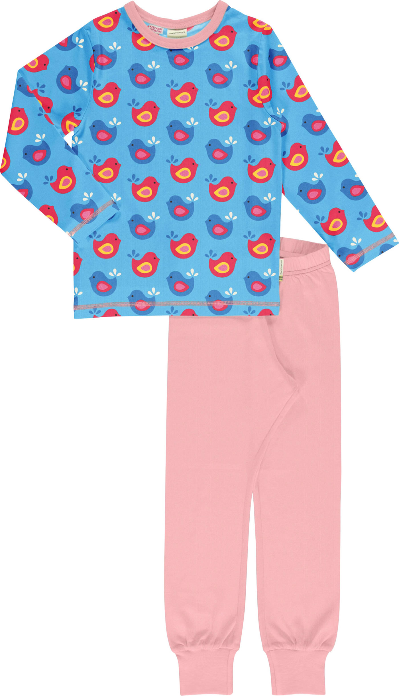 Maxomorra Pyjama BRIGHT BIRDS bleu/rose GOTS