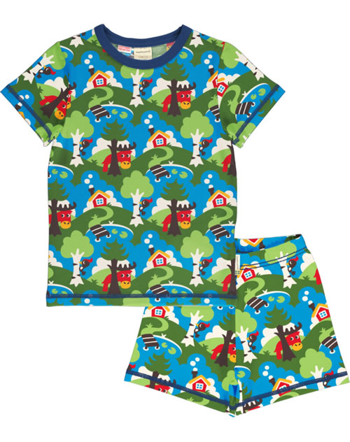 Maxomorra Pyjama COUNTRYSIDE vert/bleu