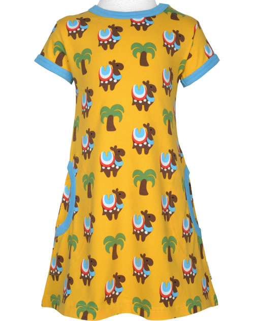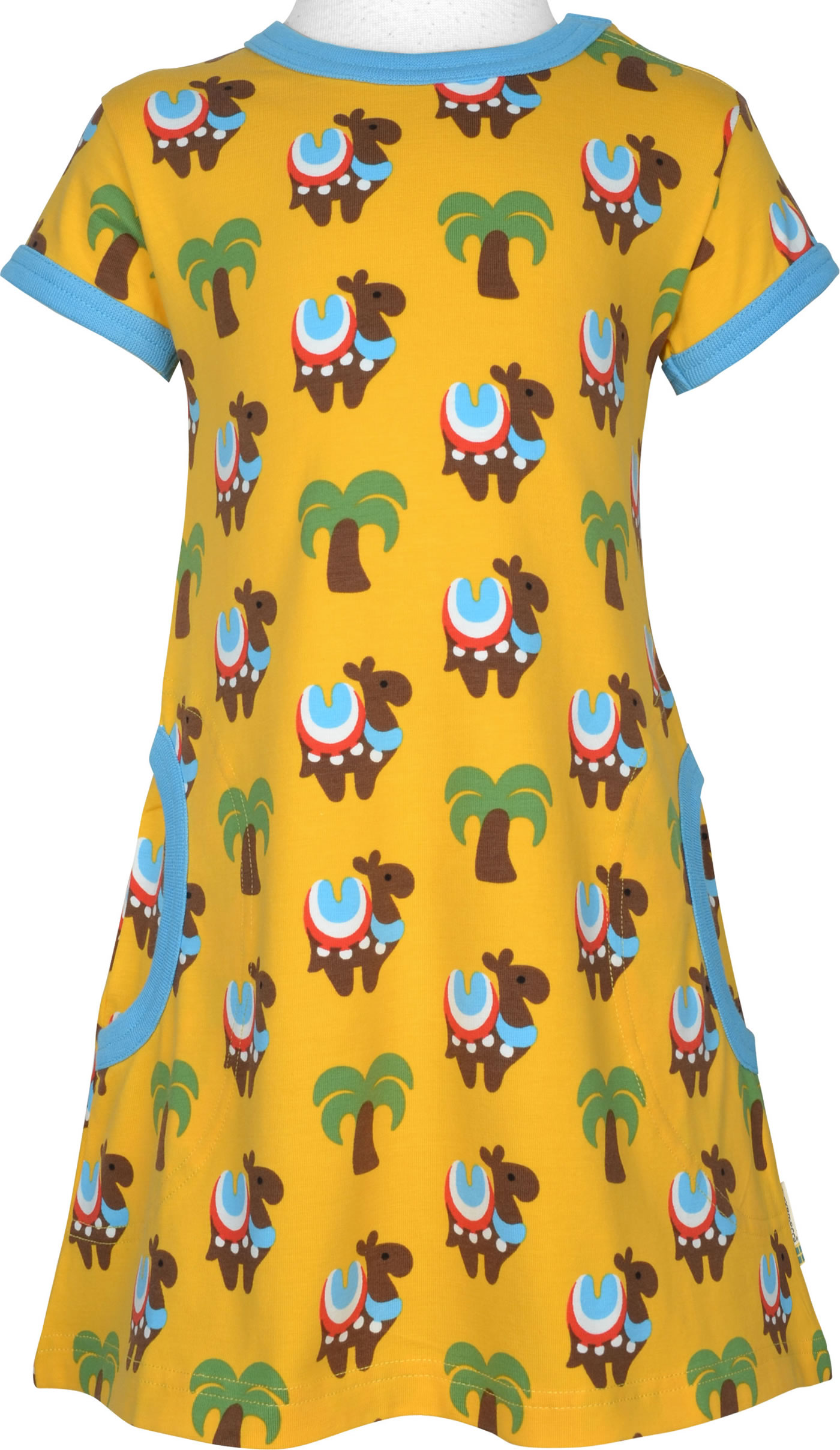 Maxomorra Robe manches courtes CAMEL CARAVAN jaune/bleu GOTS