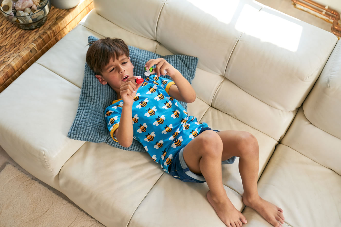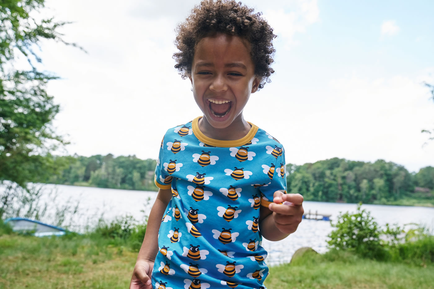 Maxomorra T-shirt manches courtes PICNIC BEE GOTS bleu/jaune