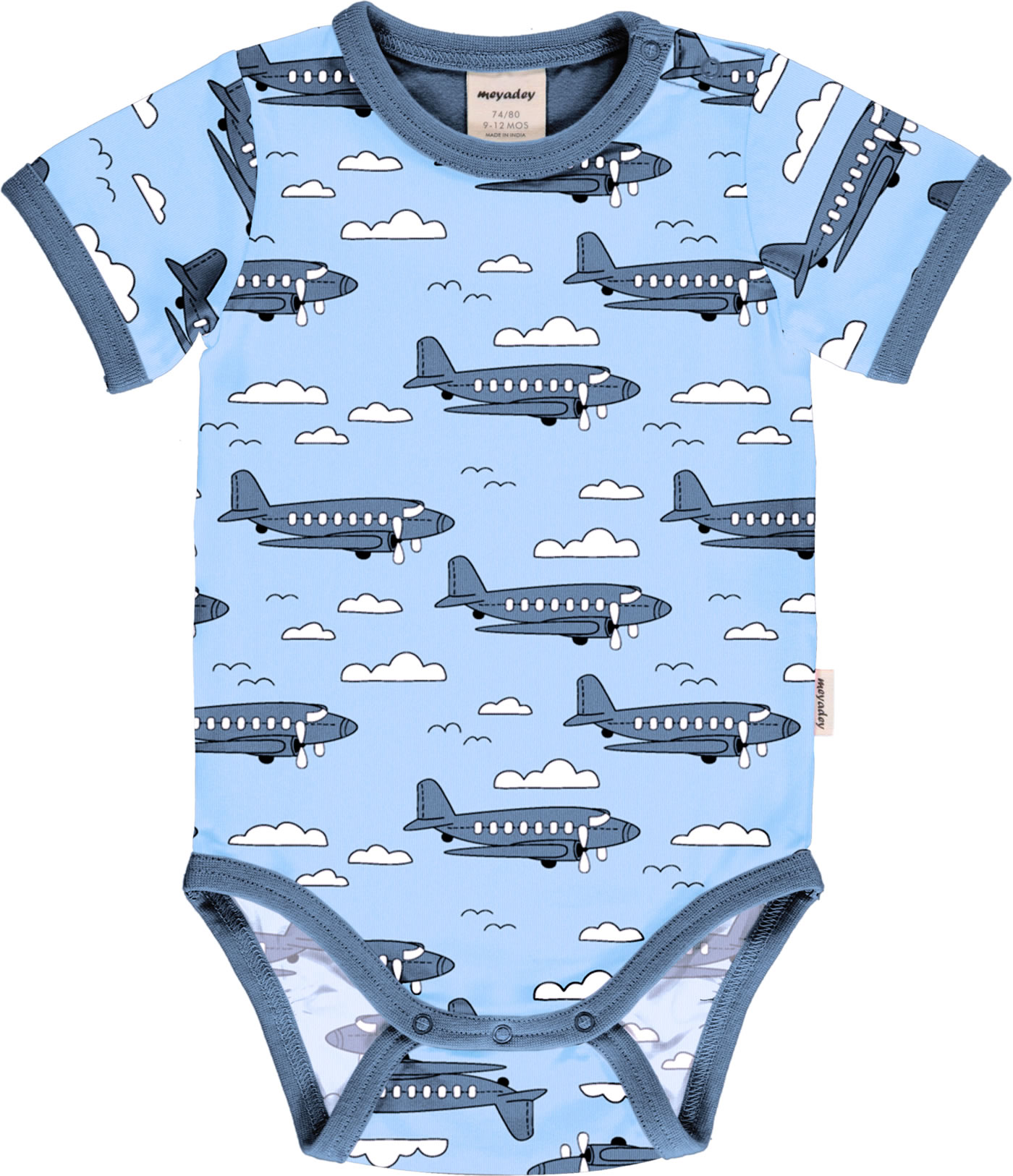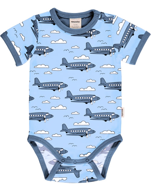 Meyadey Body pour bébé manches courte AIROPLANE bleu