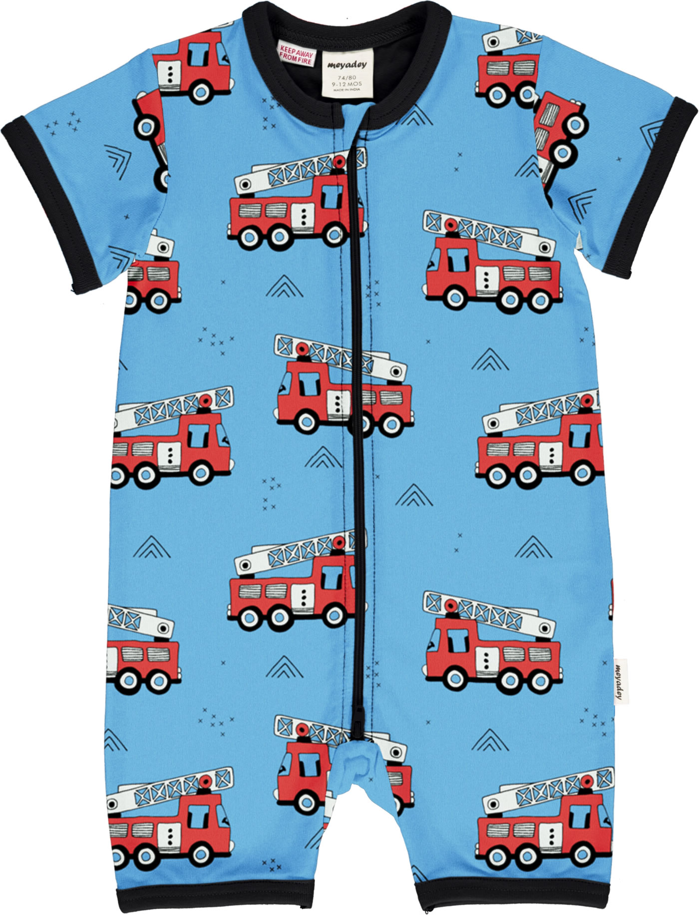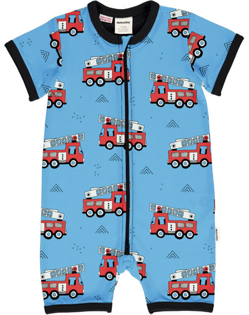 Meyadey Playsuit Short FIRE TRUCKS bleu GOTS