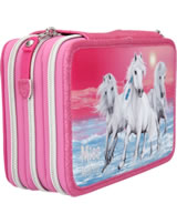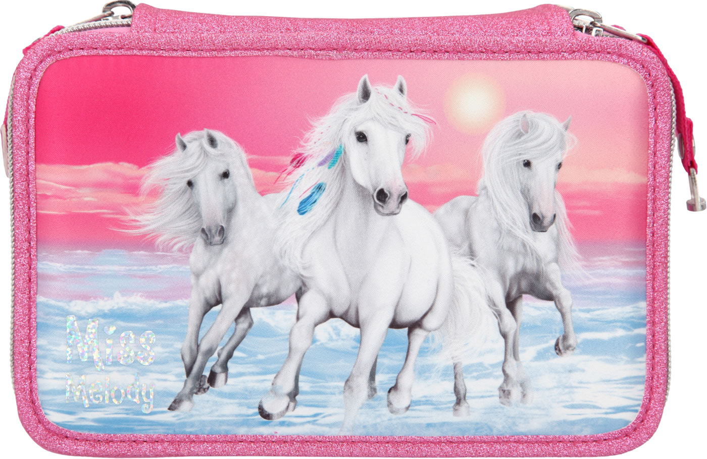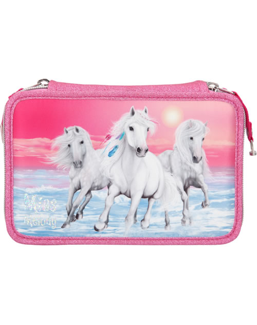 Étui à crayons pratique avec beaucoup de paillettes et un motif de cheval de rêve.