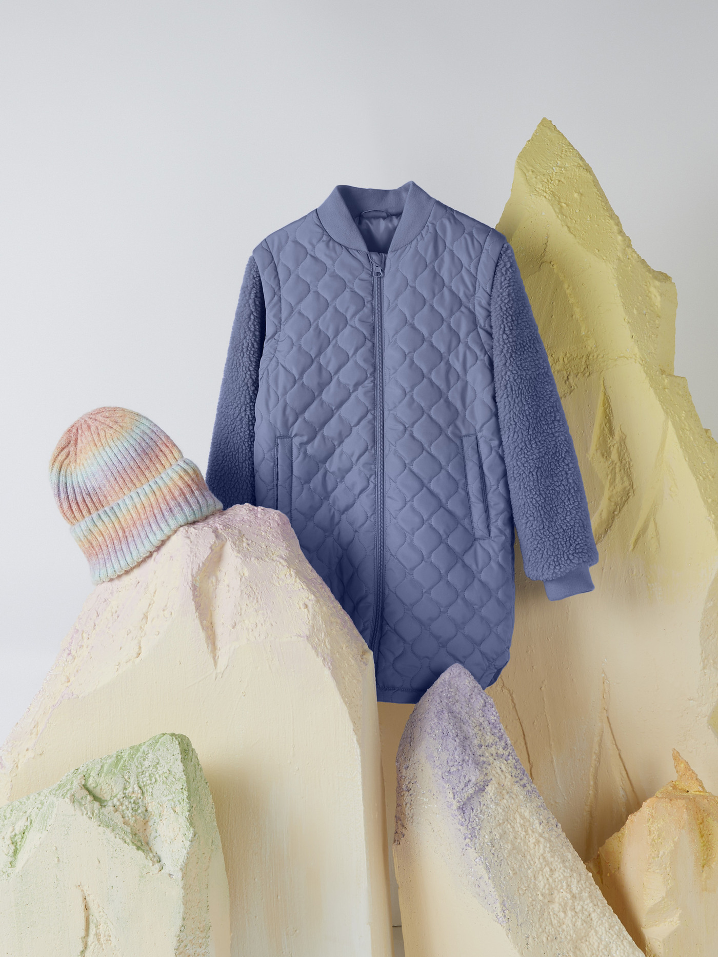 Matériau : Matériau extérieur 100 % polyester recyclé, manches, doublure et rembourrage 100 % polyester