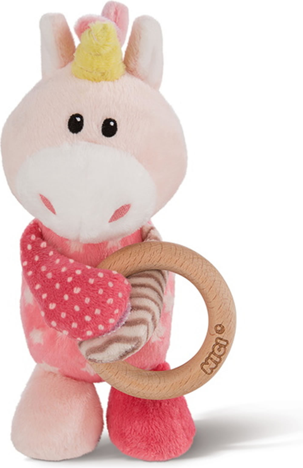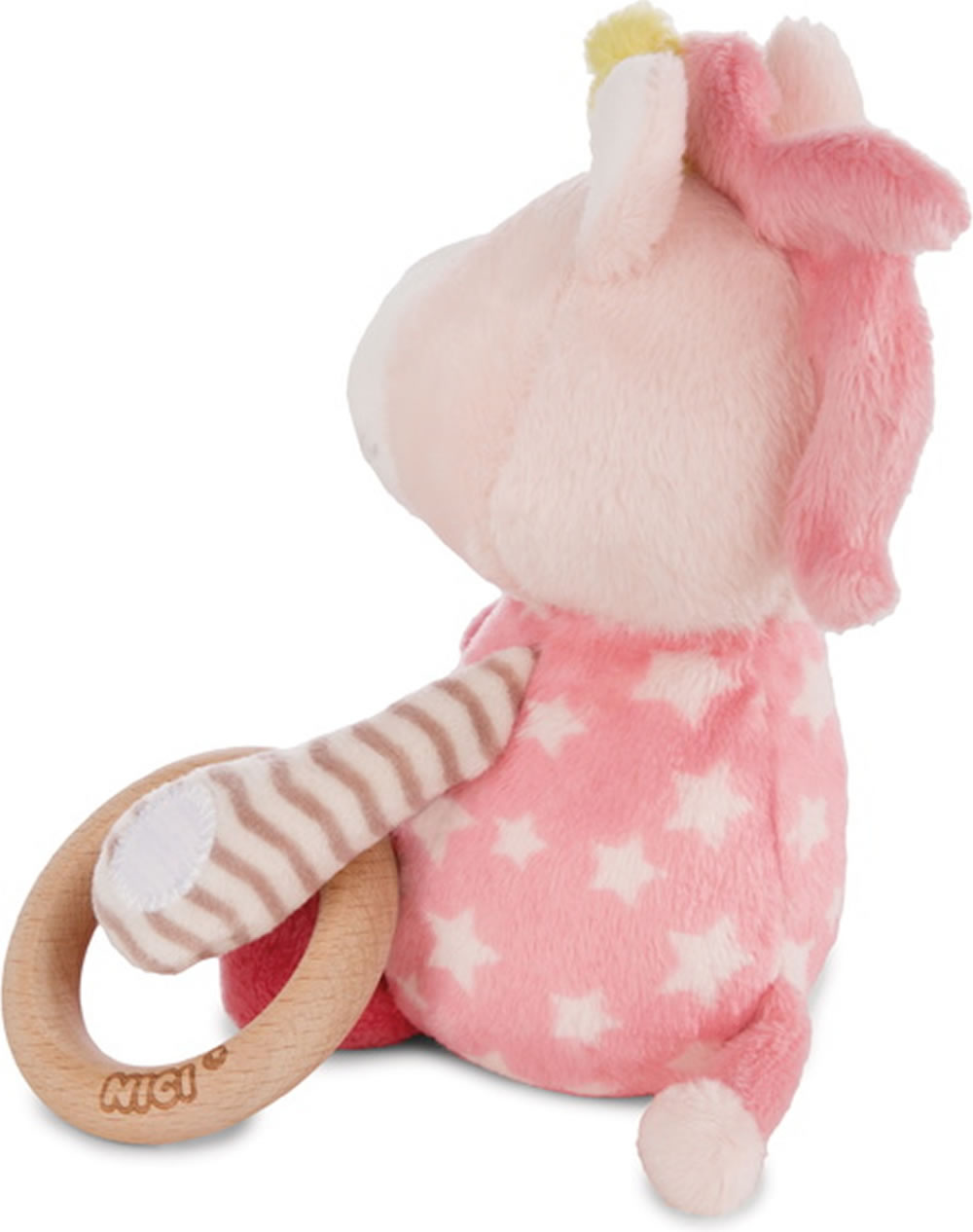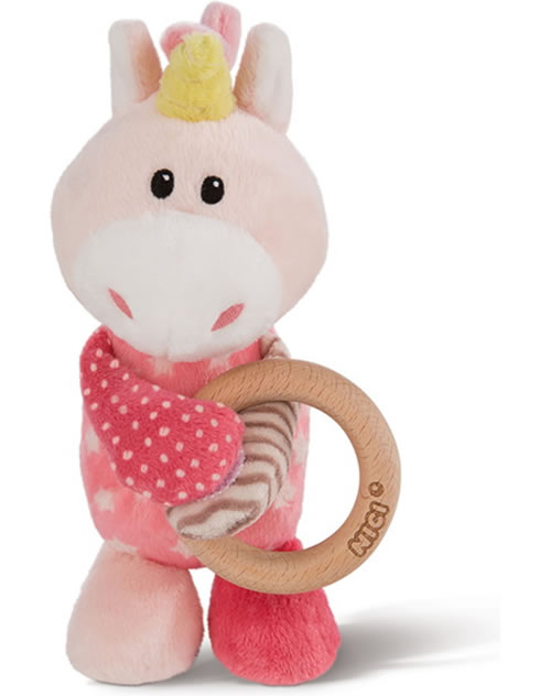 Le hochet avec la licorne Stupsi de MY FIRST NICI hochets. La bague en bois est amovible.