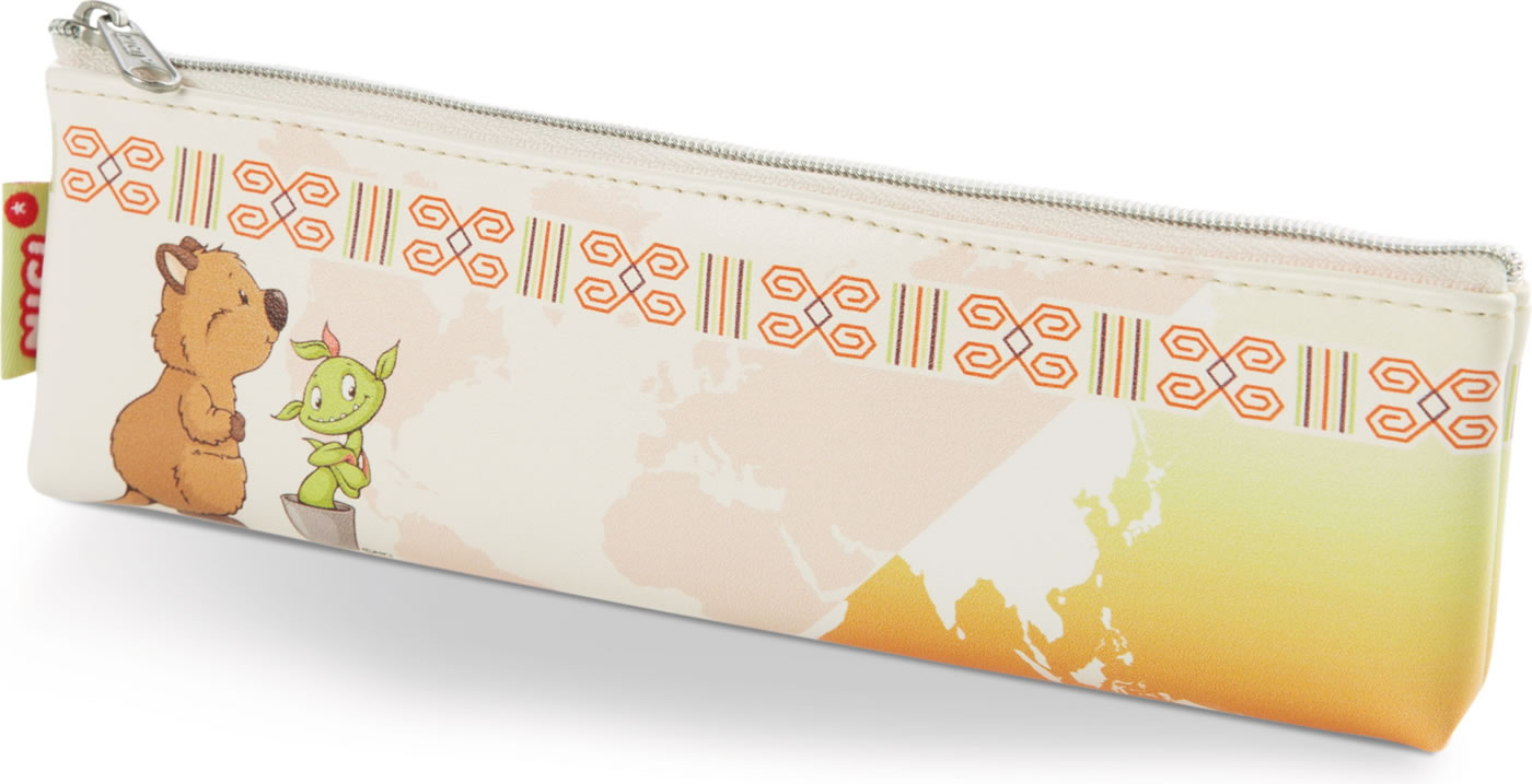 Superbe trousse pour stylos et autres accessoires avec quokka mola et la plante carnivore Gisela. Le design coloré et les motifs attirent tous les regards.