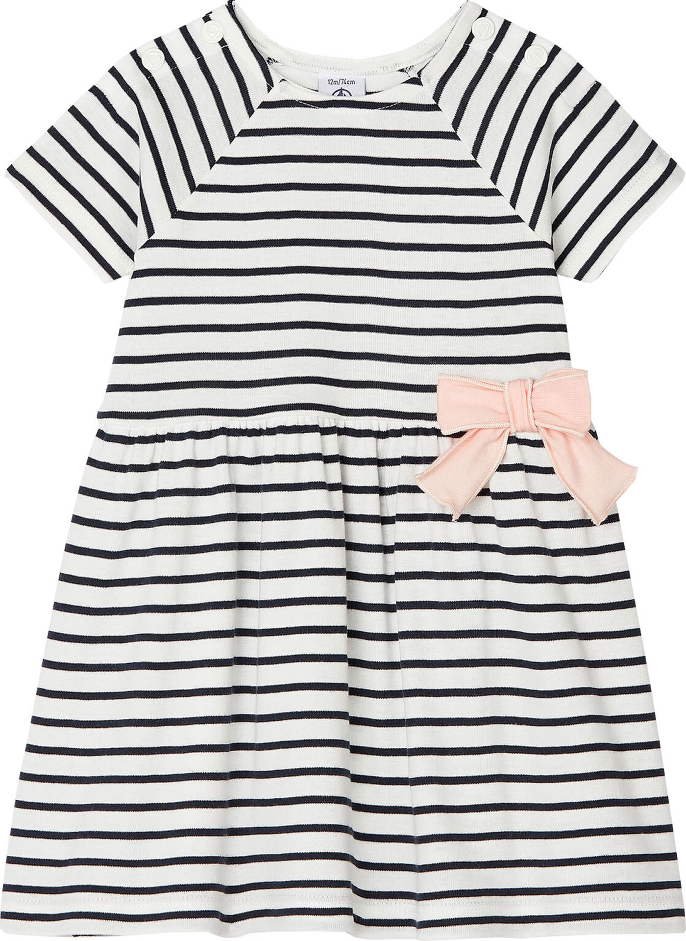 Petit Bateau Robe marine à manches courtes marshmallow/smoking