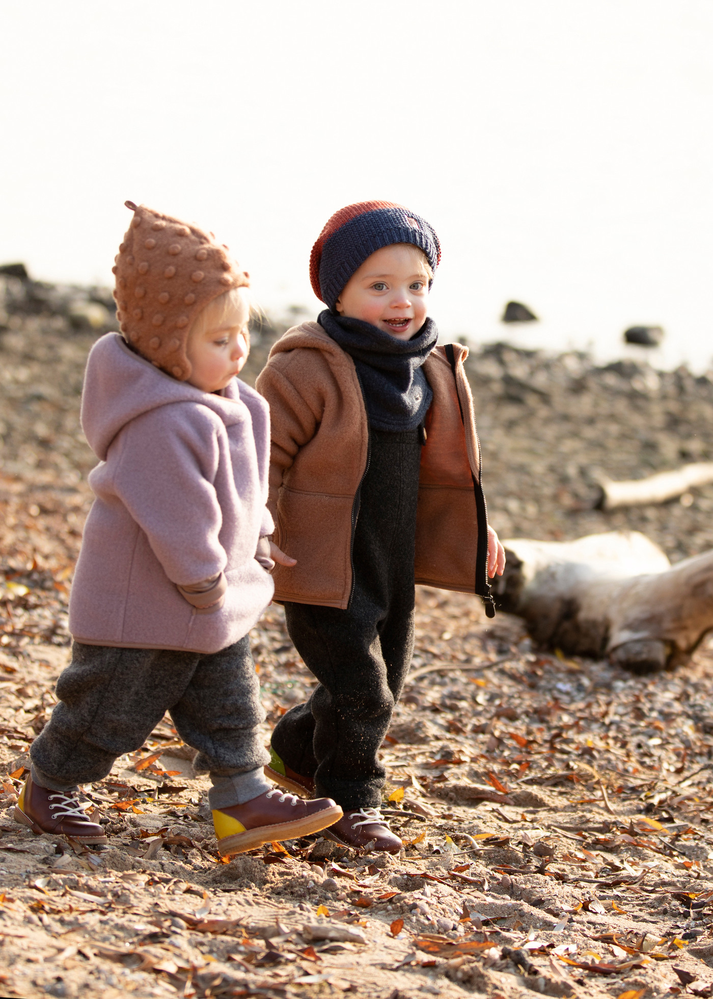 Matériau: 80 % laine vierge, 20 % coton; doublure et garnissage 97 % coton, 3 % élasthanne (certifié selon la norme mondiale du textile biologique - GOTS)