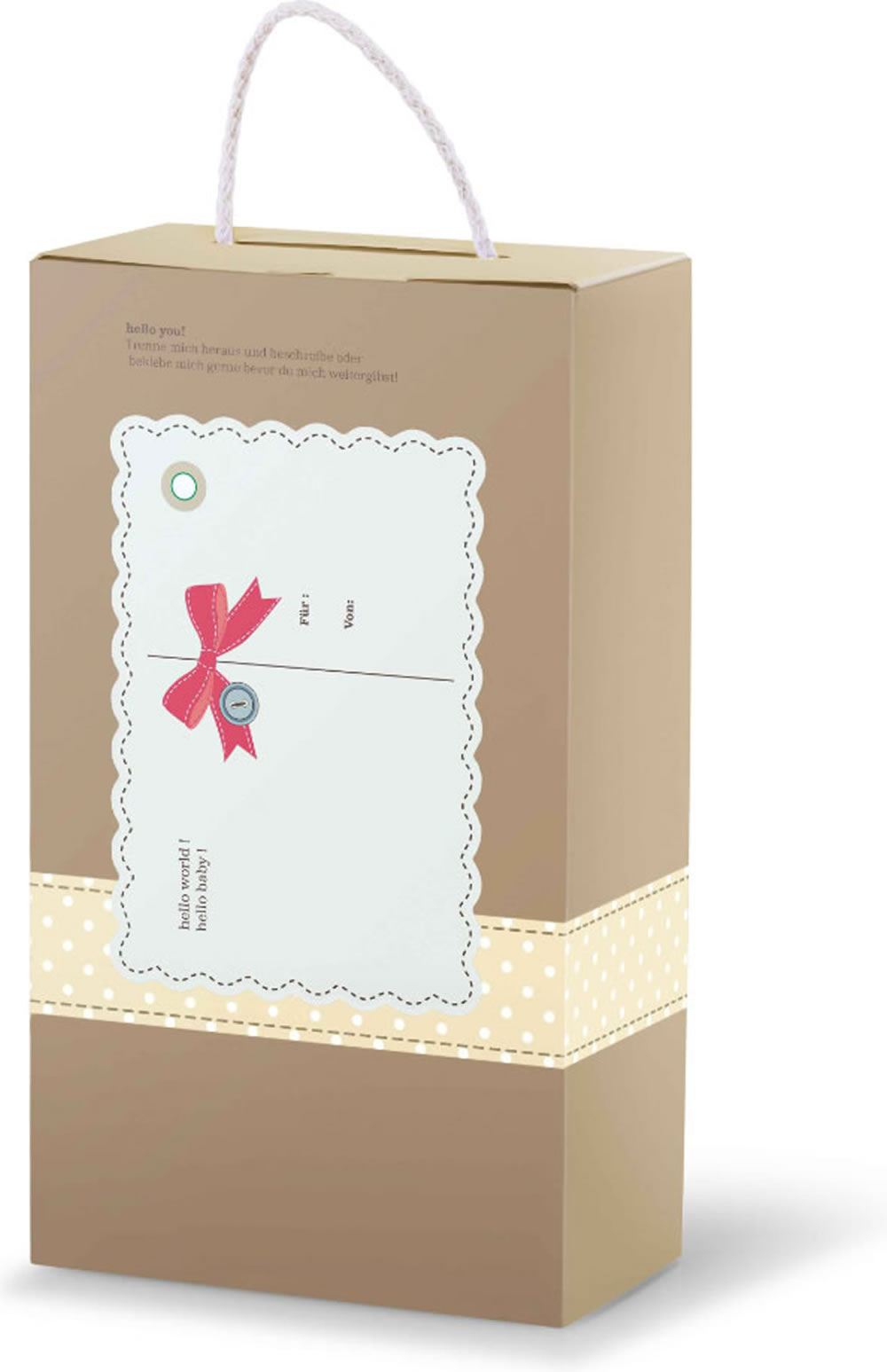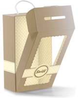 The soft and cuddly playmate Hello Baby Levi Teddy bear has grey bear fur with a little tail nub. His eyes are brown and embroidered, as are the mouth and nose. Colour contrast is created by the embroidered blue buttons in the chest area and the collar of matching colour. The paws and soles of the feet are a lighter grey with white dots. There is an elegantly designed premium gift box to match. The greeting card can be removed and written on. When removed, it reveals an additional small viewing window.