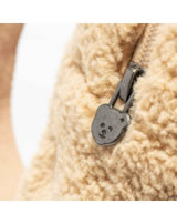 Tellement beau ! Le sac à dos de 24 cm, en polaire moelleuse brun caramel, et avec un élément couineur, est l’un des préférés de l’atelier Steiff pour l’anniversaire des 120 ans de l'ours en peluche. Le sac à dos comporte un grand et un petit compartiment, chacun avec une fermeture éclair de couleur assortie et une fermeture zippée en peluche, des sangles stables et une poignée. Ce modèle est polyvalent au quotidien. Et lorsqu'on appuis sur le motif d'ours Teddy, il couine. Mais pas d'inquiétude, ce sac à dos est tout de même un endroit douillet pour faire la sieste.