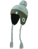 Trollkids Knitted Hat GIRLS BORGUND BOBBLE CAP dusky olive/frosty mint