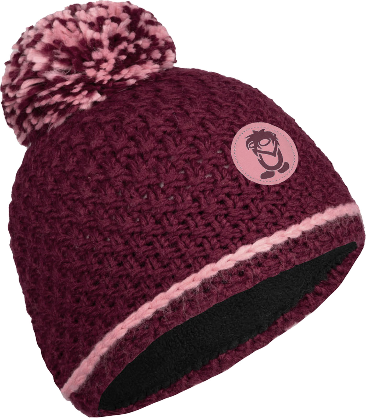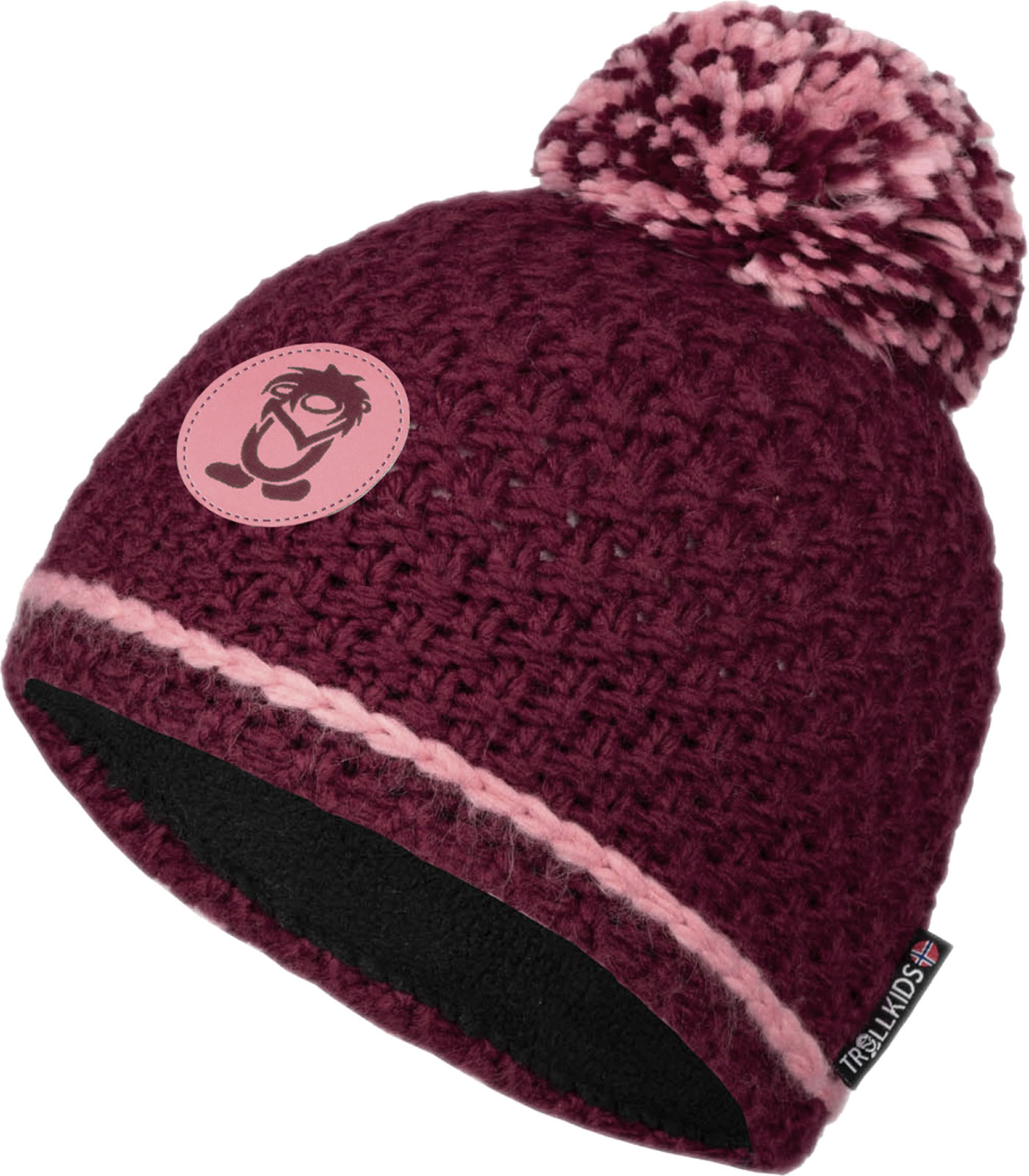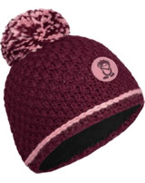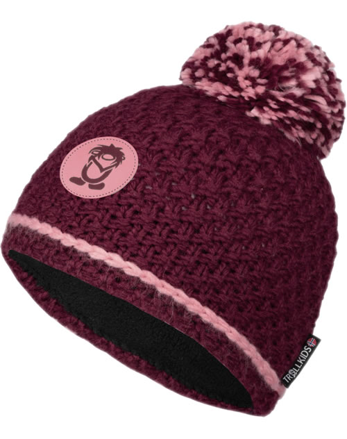 Trollkids Knitted Hat GIRLS HEMSEDAL BOBBLE CAP maroon red/antique rose