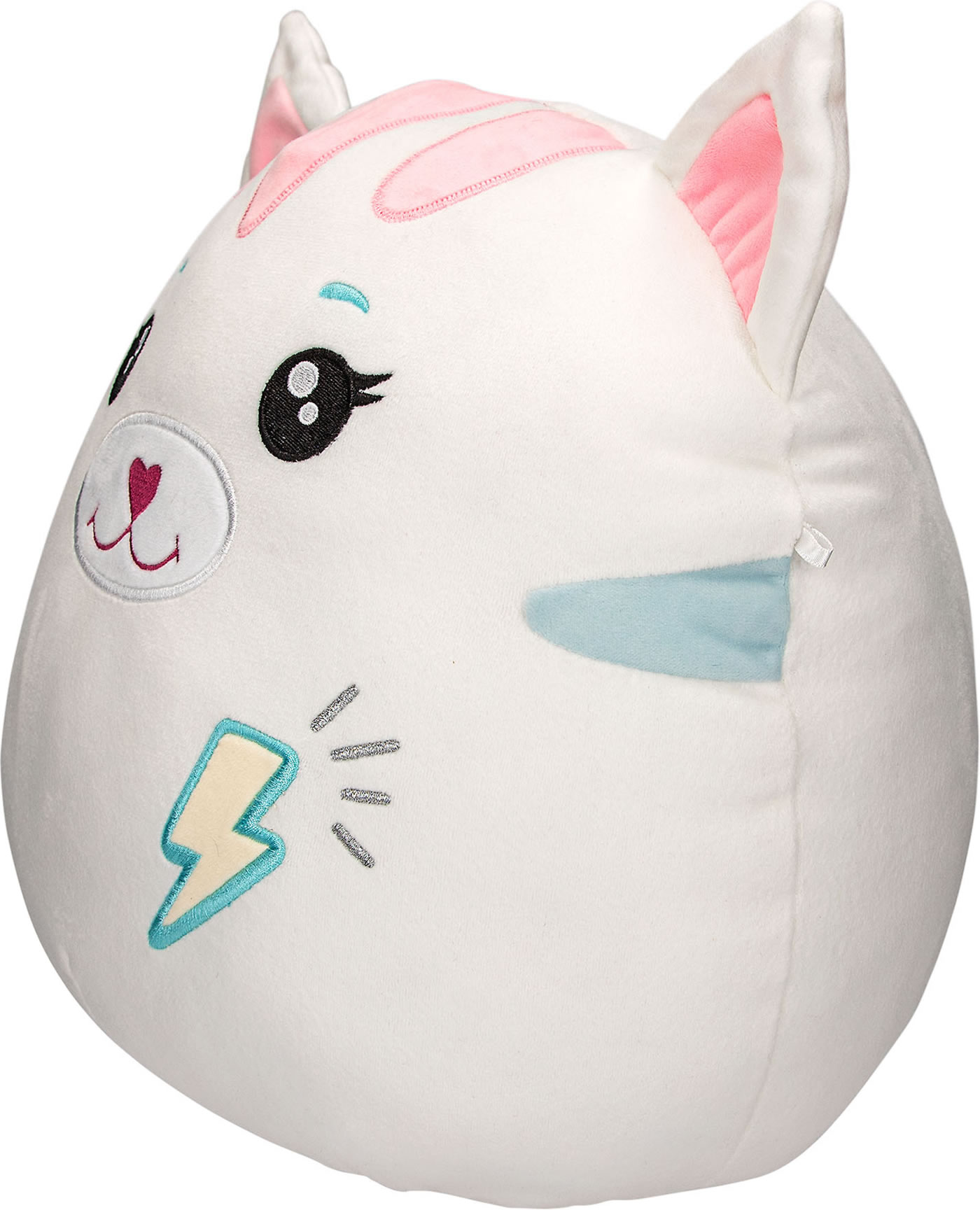Is it a pillow? Is it a cuddly toy? It's both! The round, white and wonderfully soft plush cat has a super fluffy filling and cute little pointy ears. It gets even cuddlier at night: The nose, the ears (inside), the stripes and the applied lightning bolt of the Ylvi Swoppie kitten glow in the dark!