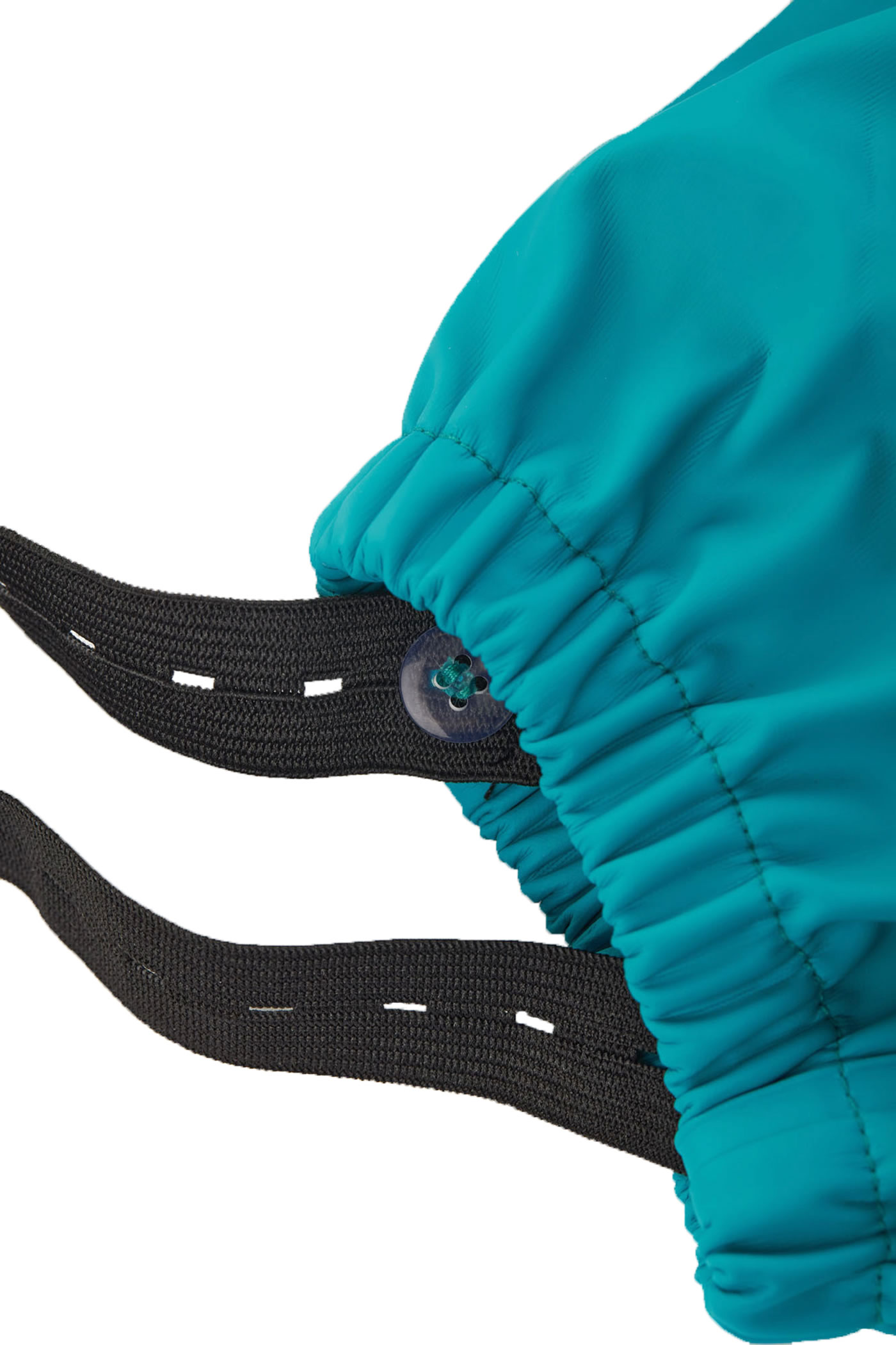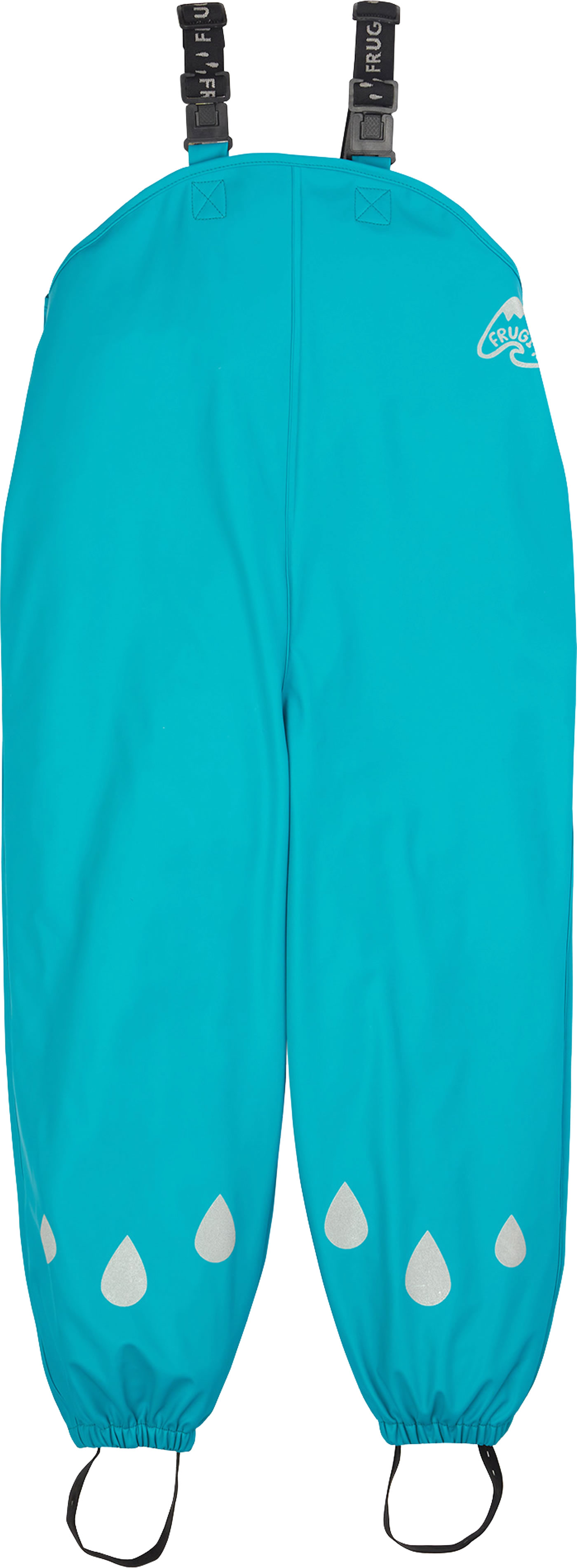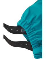 Die verstellbaren Clip-Hosenträger geben einen guten Halt, zusätzlich lässt sich die Hose mit Druckknöpfen in der Weite verstellen. Die elastischen Beinenden haben einen Fußsteg, mit dem die Hosenbeine nicht hochrutschen können. Die reflektierenden Regentropfen und das Logo sorgen für eine bessere Sichtbarkeit im Dunkeln.