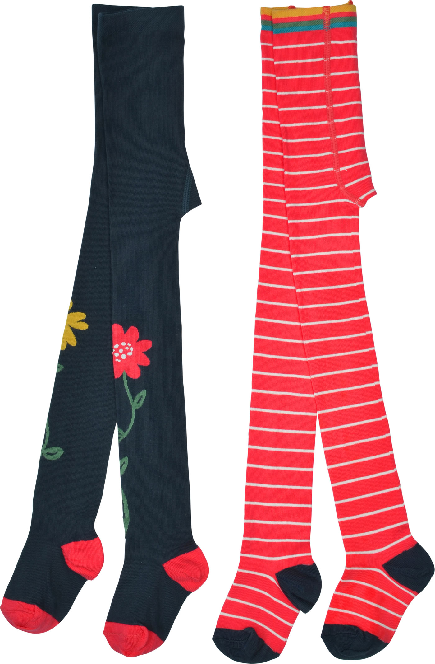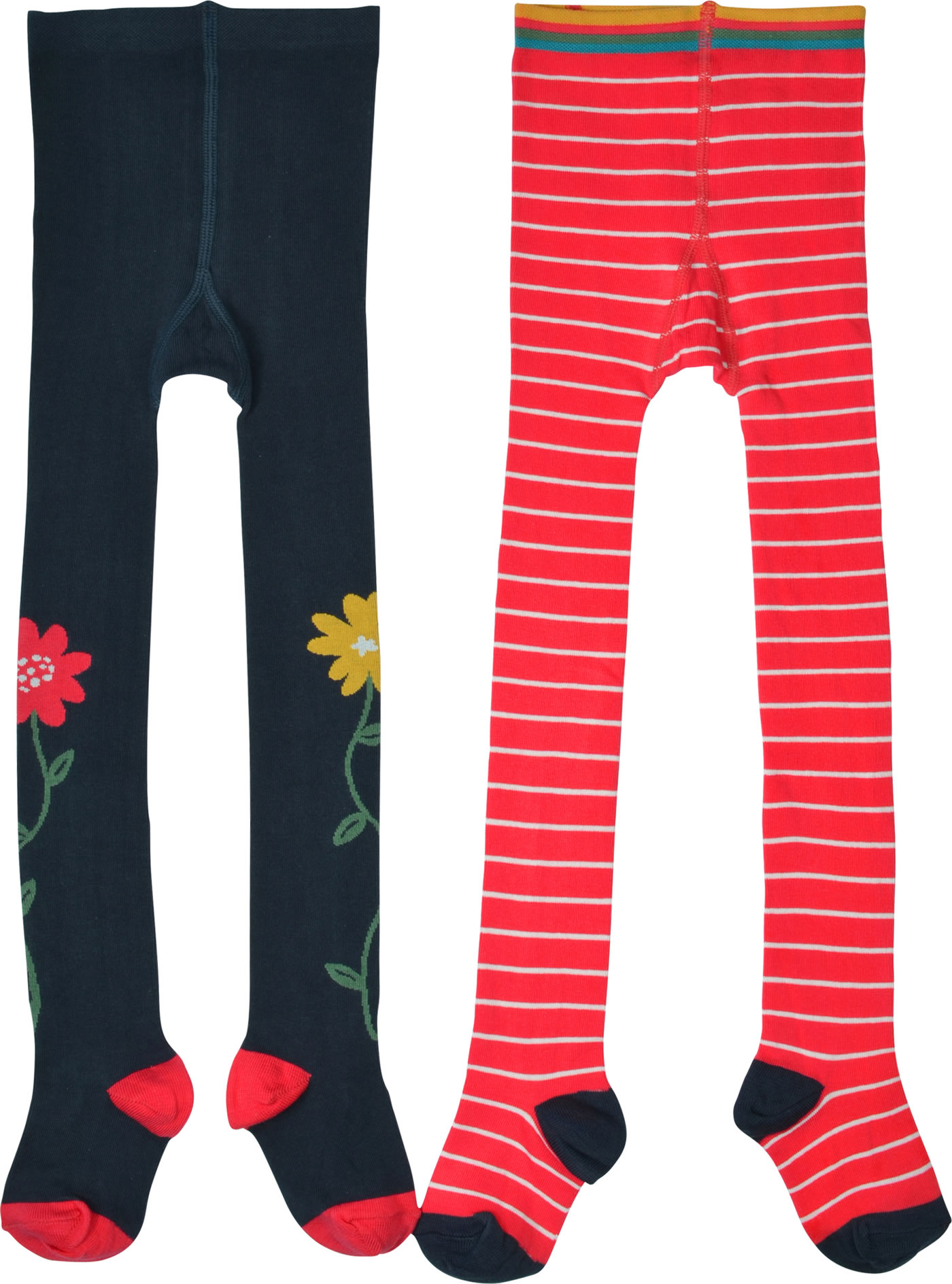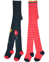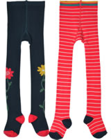 Frugi Strumpfhosen 2er Pack NORAH indigo flowers/watermelon