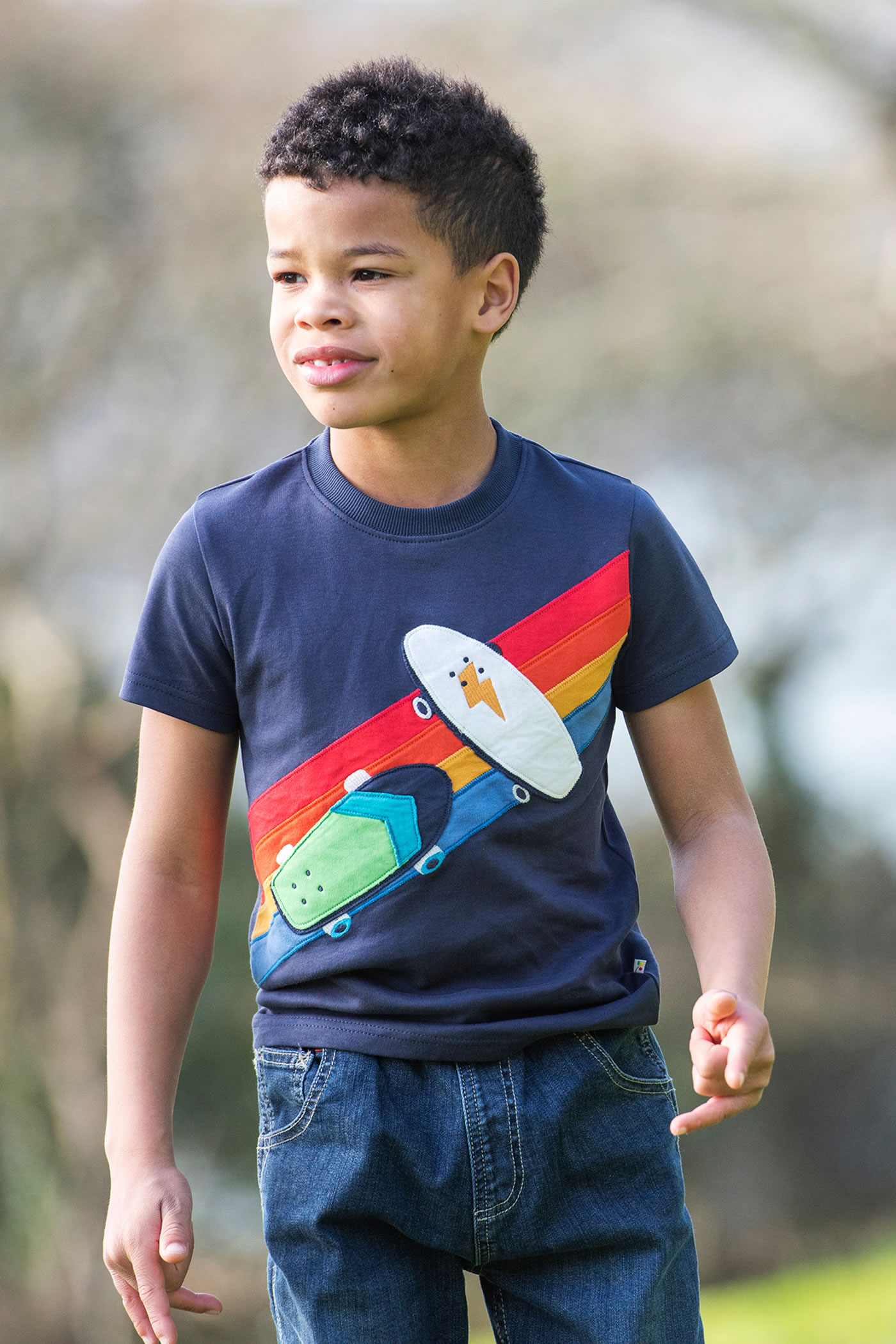Frugi T-Shirt Kurzarm CARSEN APPLIQUE indigo skateboards
