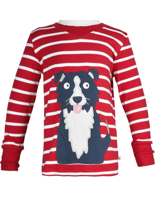 Langarm-Shirt mit toller Hunde-Applikation von FRUGI. Das farbenfrohe Lieblings-Shirt lässt sich prima kombinieren. Das weiche Material aus organischer Baumwolle fühlt sich angenehm auf der Haut an.