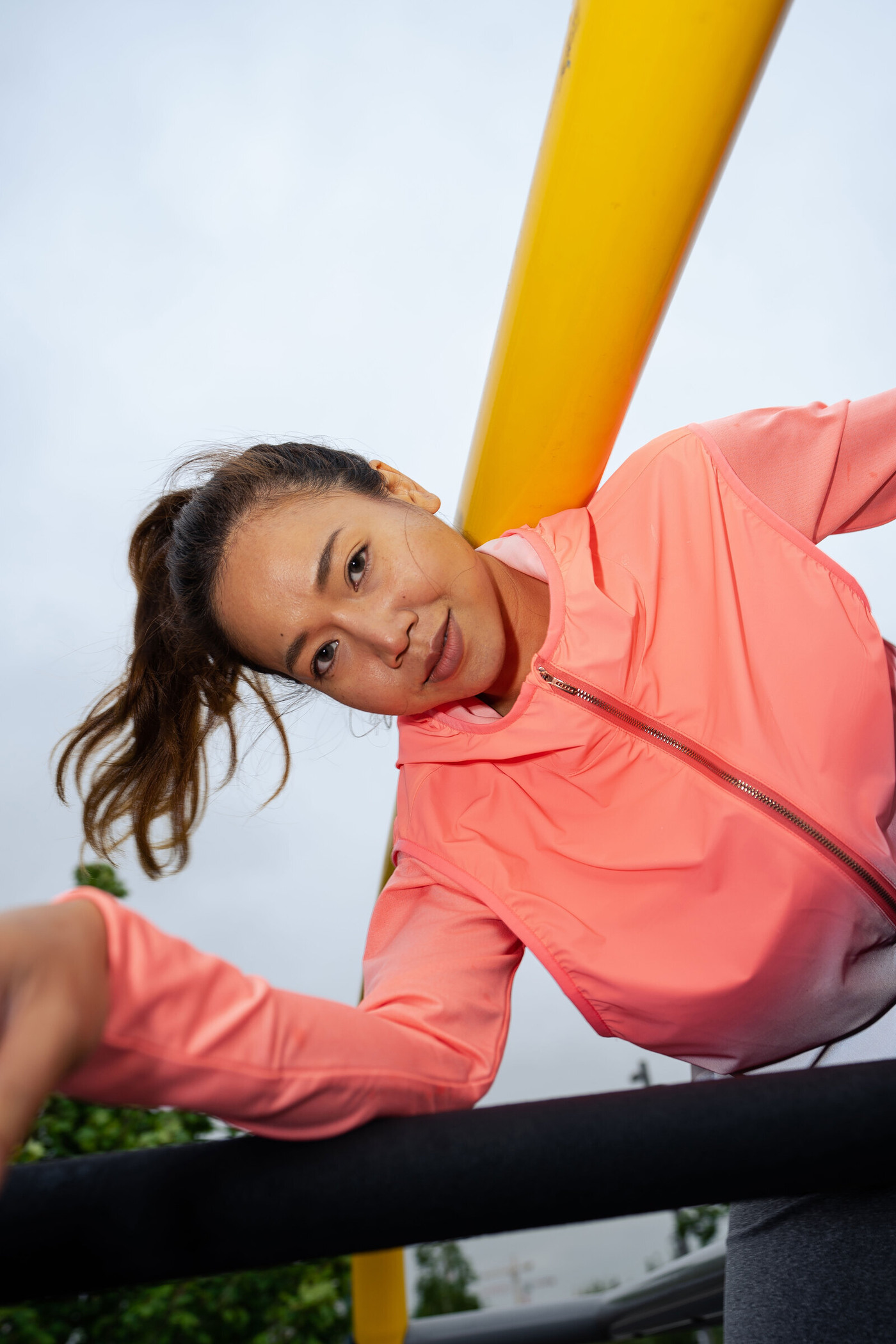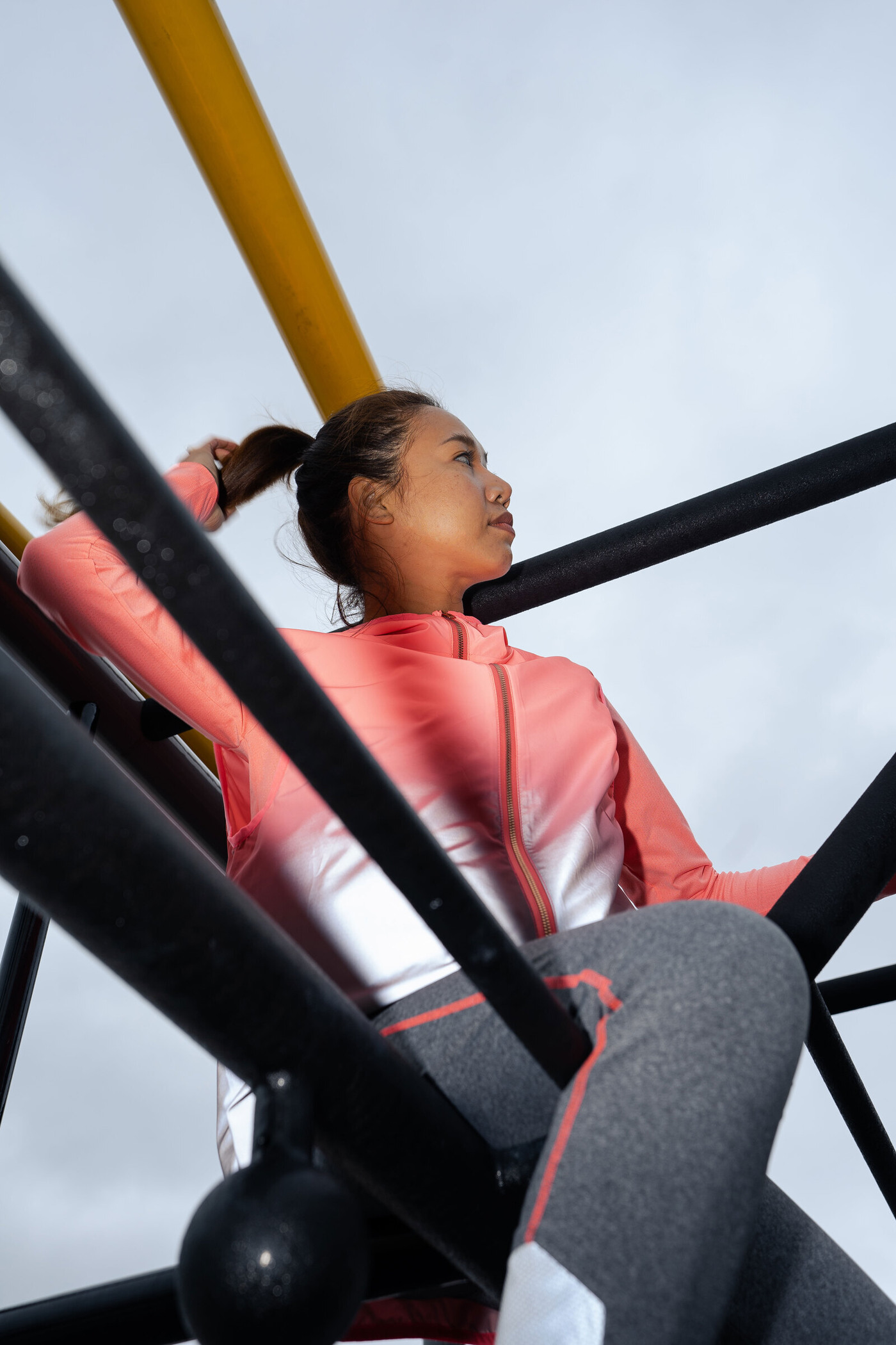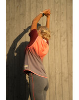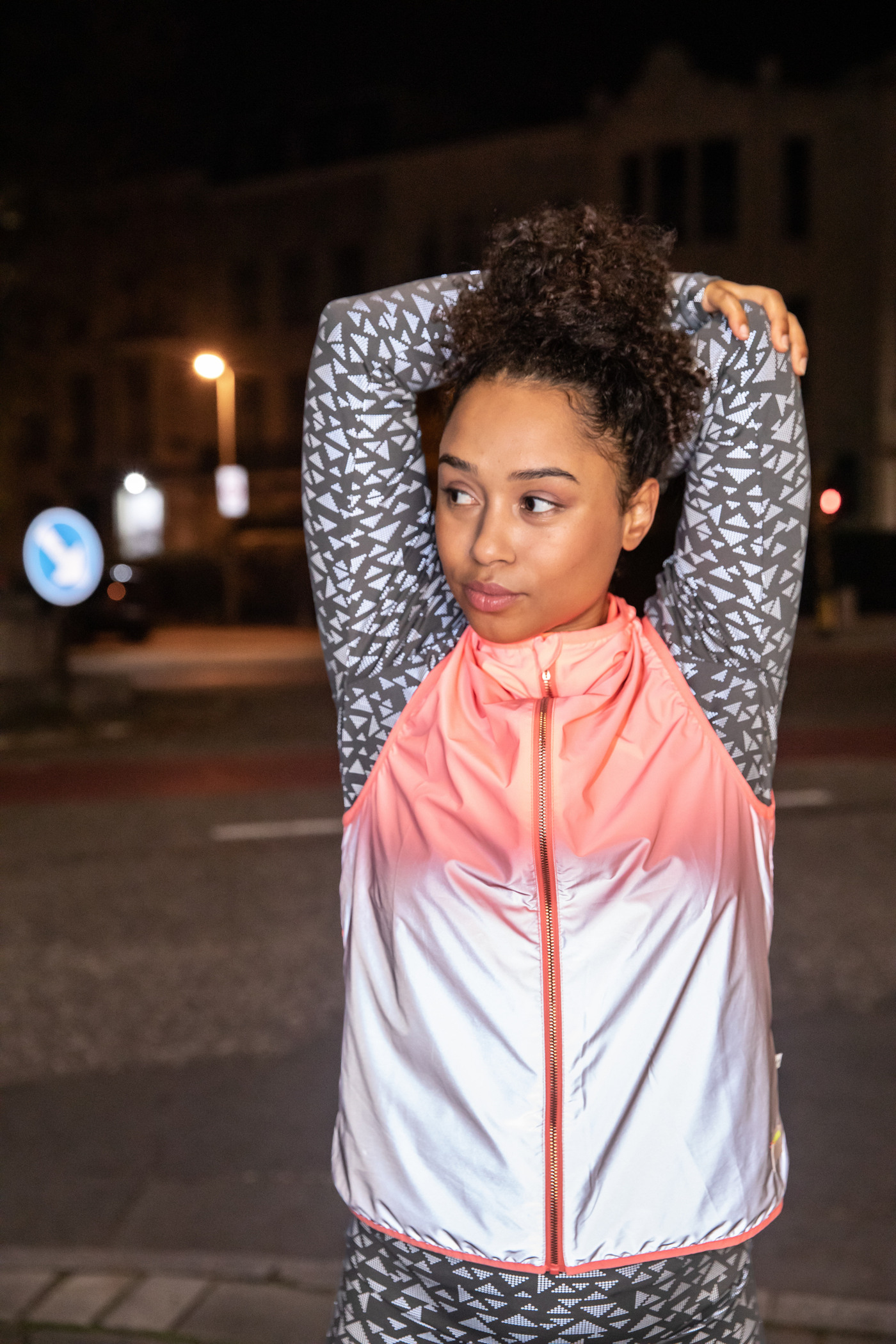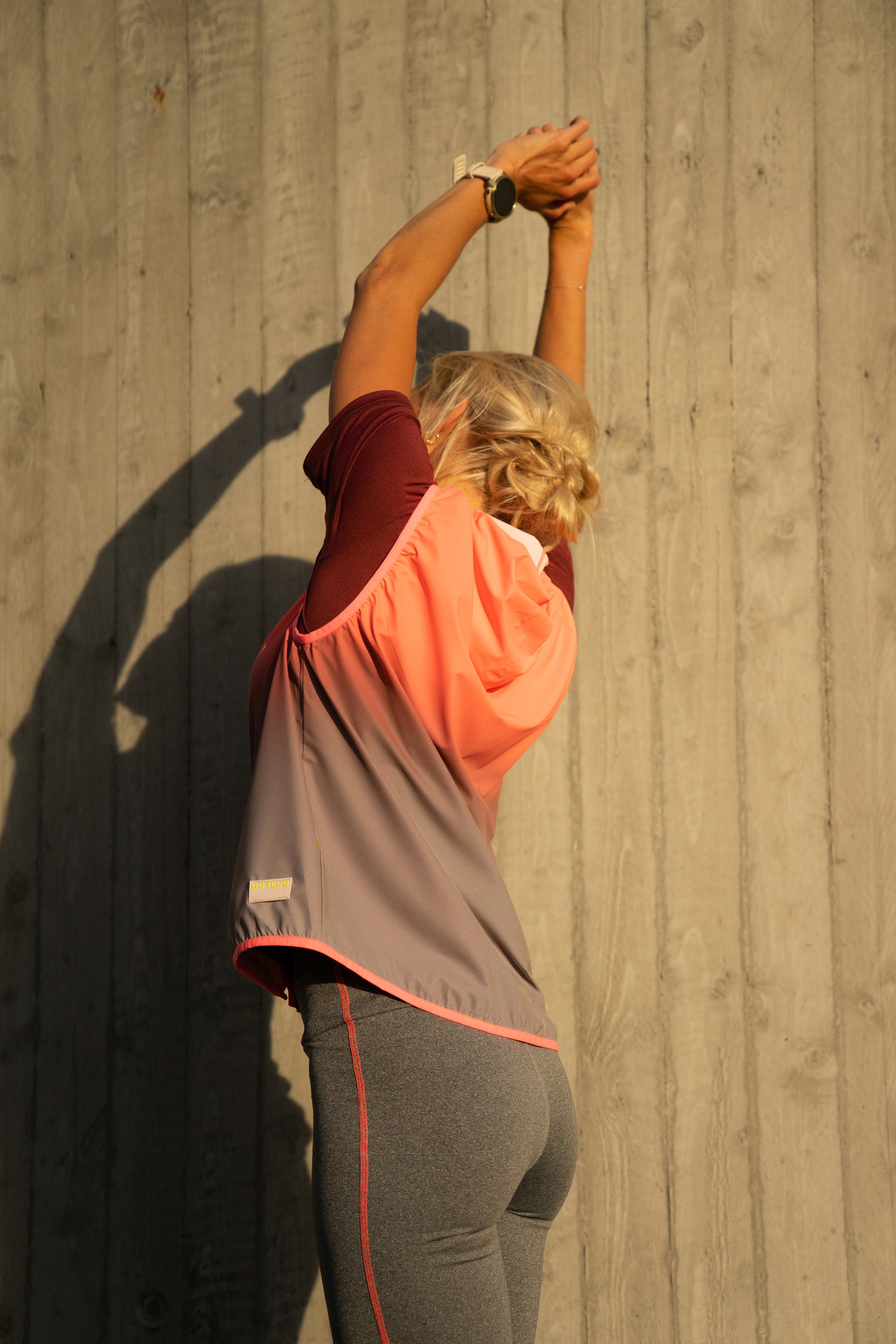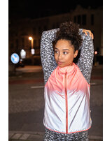Die Weste mit ihrem Farbenspiel aus korallen- und silberfarbenen Tönen ist ein Must-Have für alle aktiven Damen.