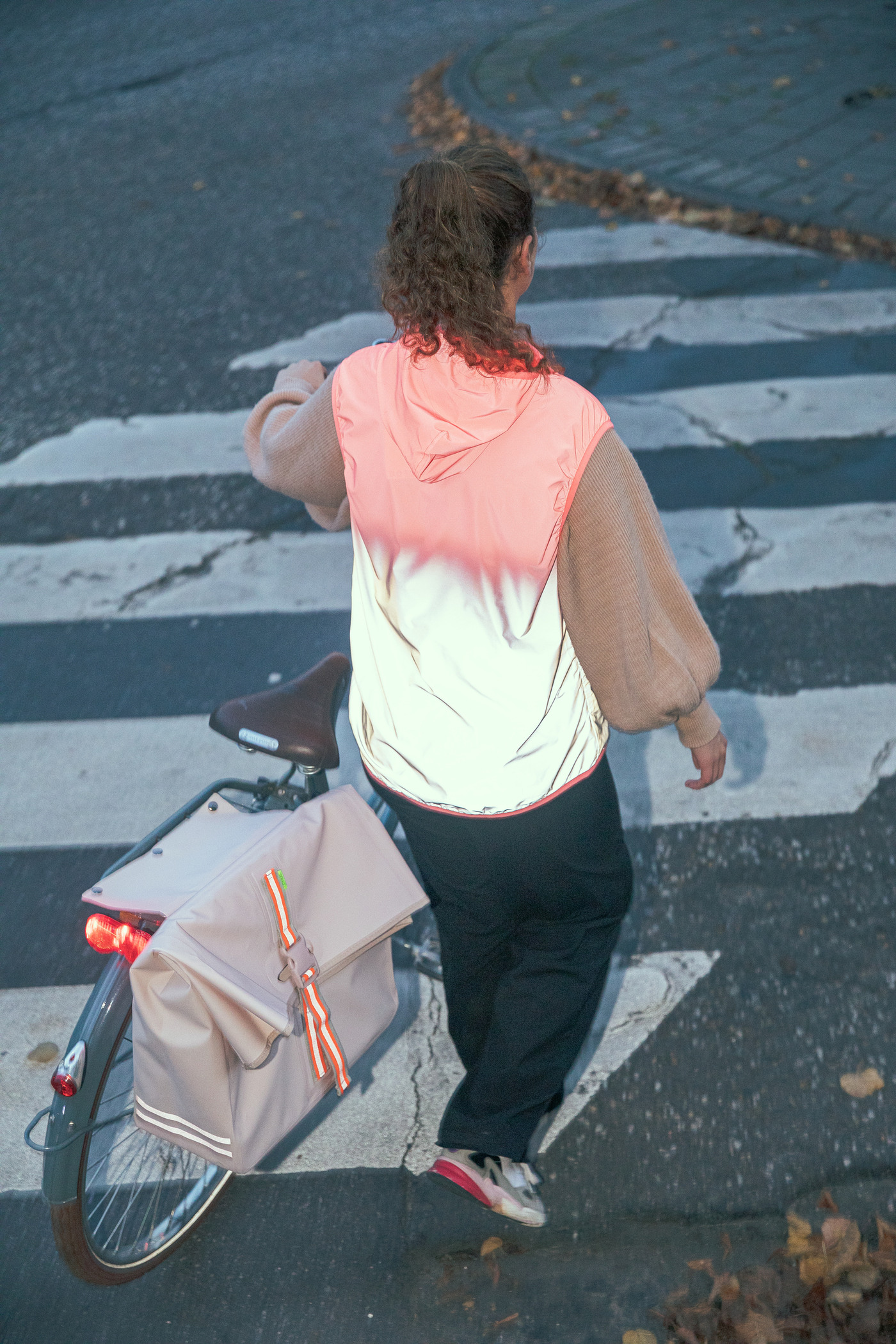 Die reflektierende Sicherheitsweste Lori für Damen sieht nicht nur am Tag cool aus, sondern wird bei Dämmerung & Nacht zum absoluten Hingucker, da sie bei Licht- Reflexion in der Dunkelheit hell leuchtet.