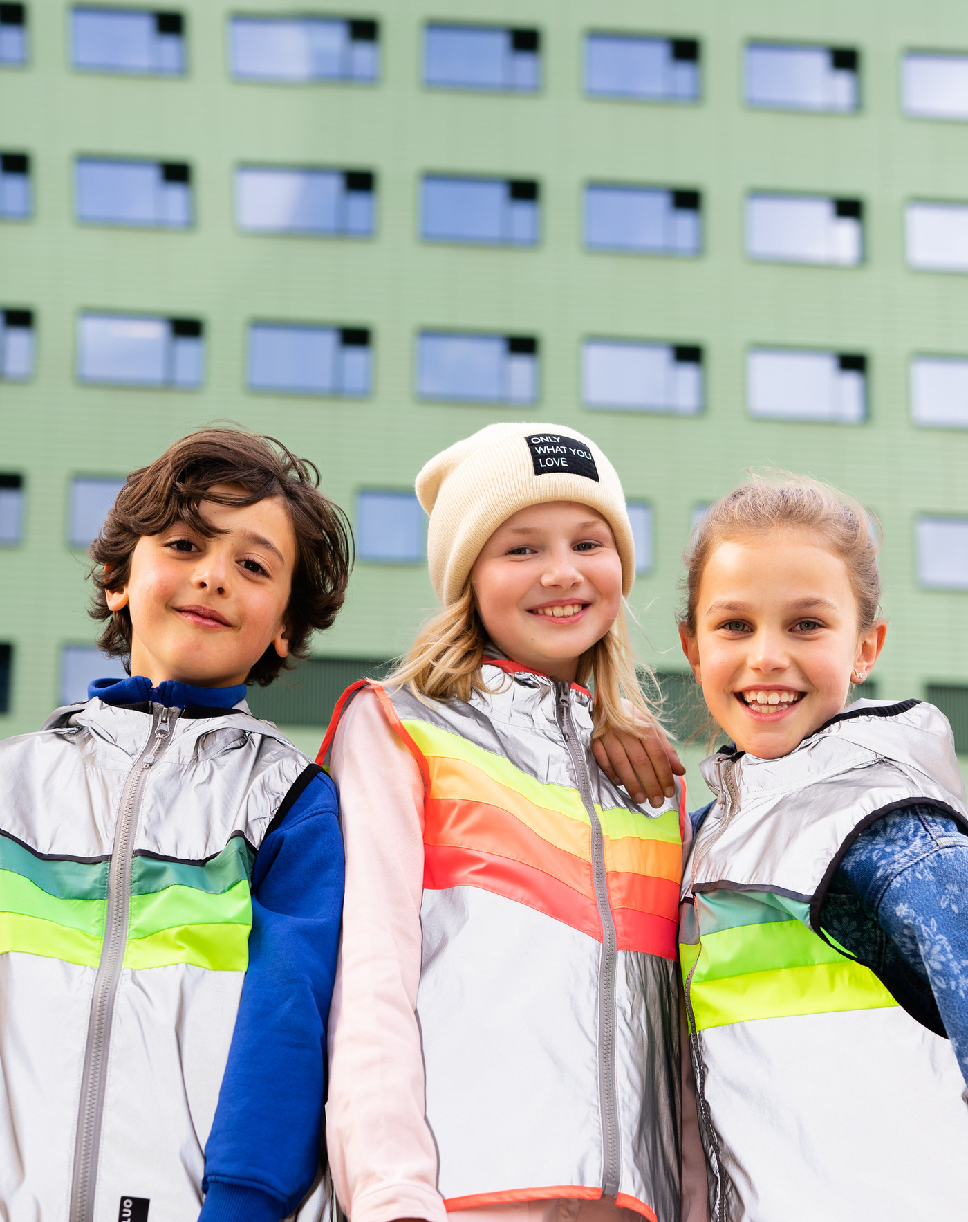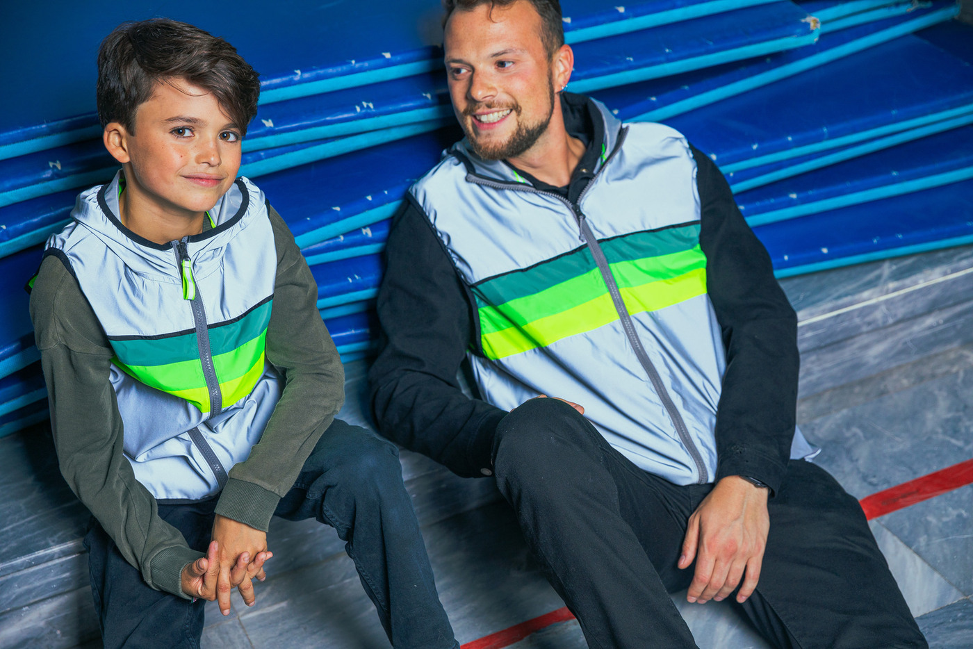 Die North Warnweste für Kinder verfügt über ein fluoreszierendes grün-gelbes Farben-Design an Vorder- und Rückseite.