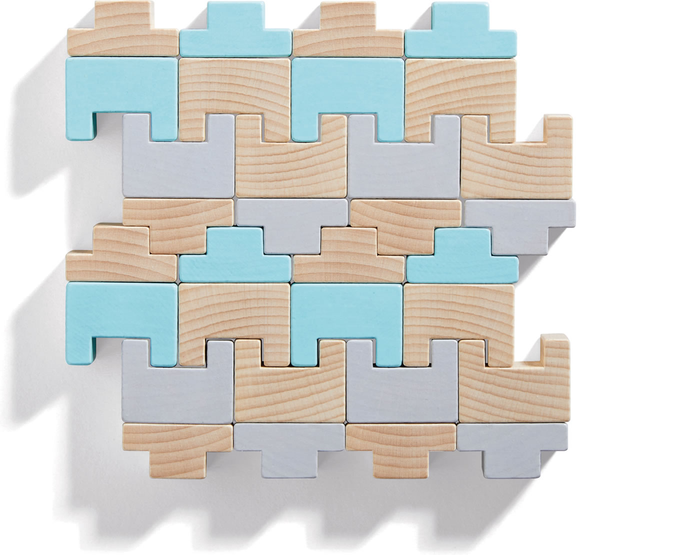 32 Steine in U- und T-Form lassen raffinierte Muster und Bauwerke entstehen