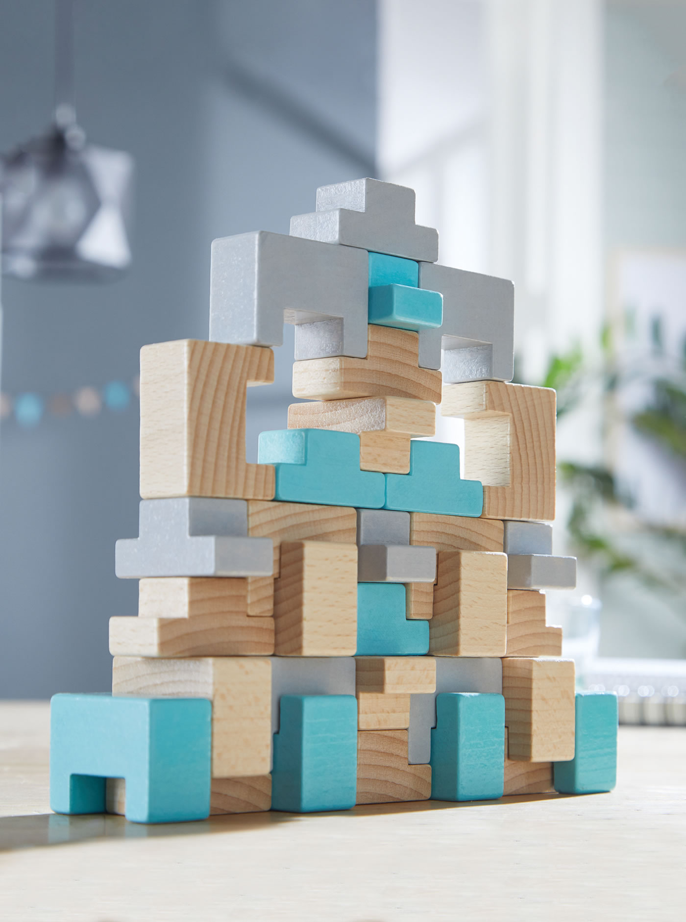 das 3D-Legespiel Formenmix von HABA bietet besonders spannenden Stapelspaß