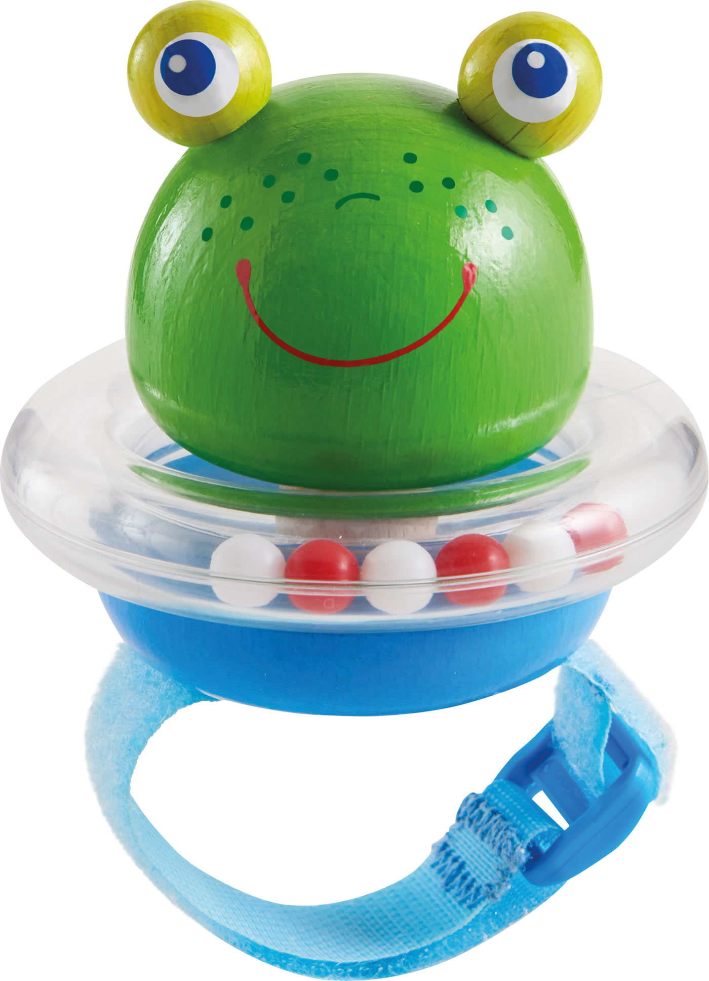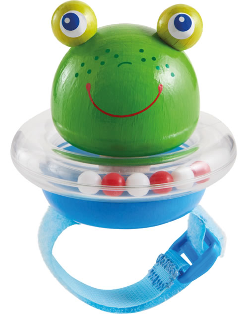 die lustige Buggy-Spielfigur Frosch von HABA passt dank Klettverschluss an jeden Buggy