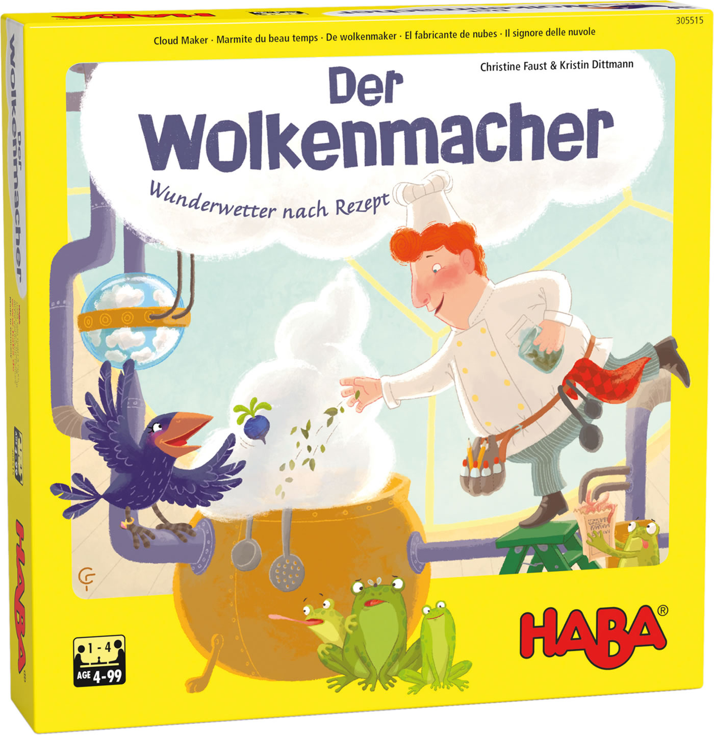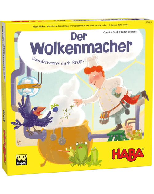Der Wolkenmacher und die Krähe kochen zusammen immer das unglaublichste Wetter! Doch wenn der Wolkenmacher mal nicht da ist, muss die Krähe dies alleine tun – und braucht deshalb Hilfe. Wie gut, dass sich die Spieler beim HABA Memo-Lauf-Spiel Der Wolkenmacher - Wunderwetter nach Rezept alle gemeinsam auf Zutatensuche begeben. Mit etwas Würfelglück und einem guten Gedächtnis beim Aufdecken der Zutatenplättchen werden die drei Rezeptkarten mit Zutaten gefüllt.