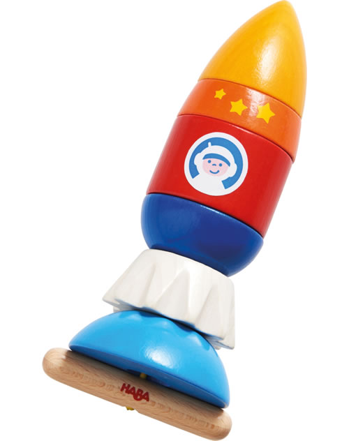 3, 2, 1 – die Rakete startet ins All. Doch vorher muss die Raketenspitze noch mit den farbigen Fädelsteinen zu einer ganzen Rakete vervollständigt werden. Um die Steine auf die Fädelschnur zu ziehen, sind Konzentration und etwas Fingerspitzengefühl gefragt.