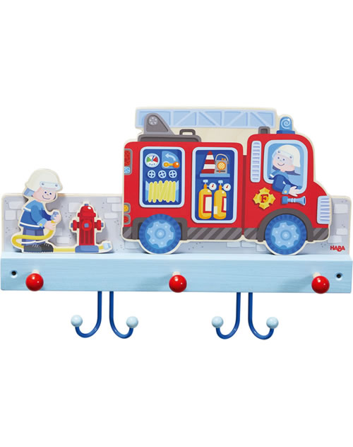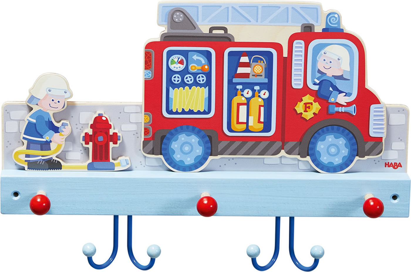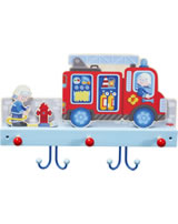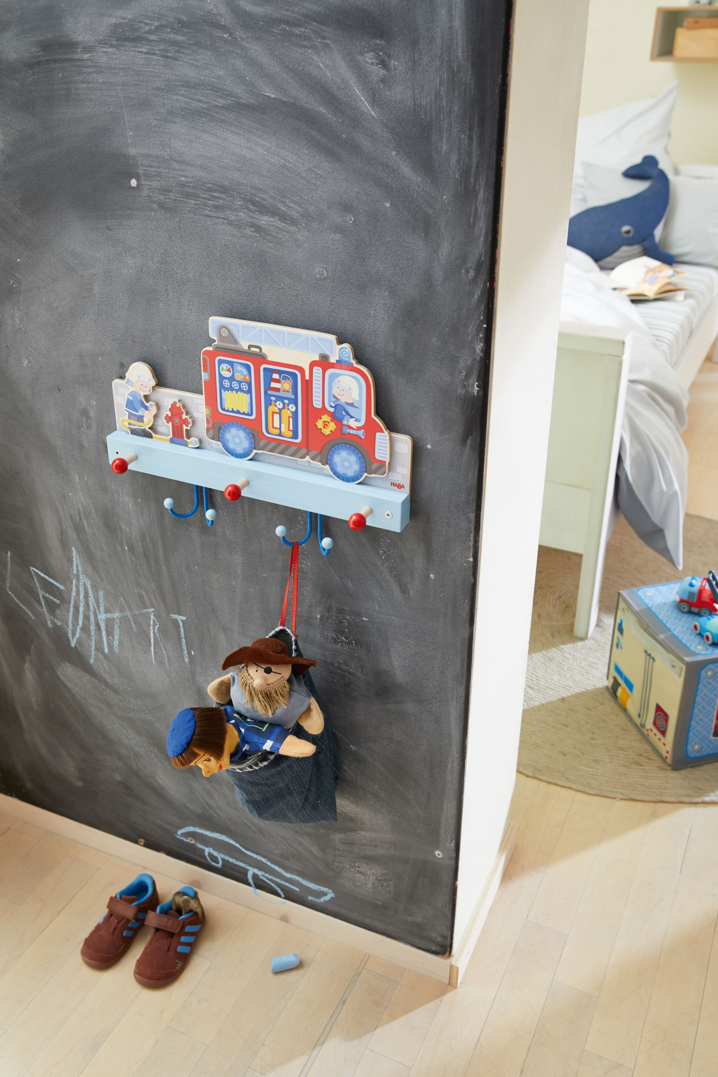 Tatütata, die Feuerwehr ist da – doch nicht zum Löschen, sondern zum Ordnung-Machen: An dieser Garderobe sind Jacken, Mützen und Schals im Handumdrehen ordentlich aufgehängt und bereit für den nächsten Einsatz. Mit Montagematerial (Schrauben und Dübel).
