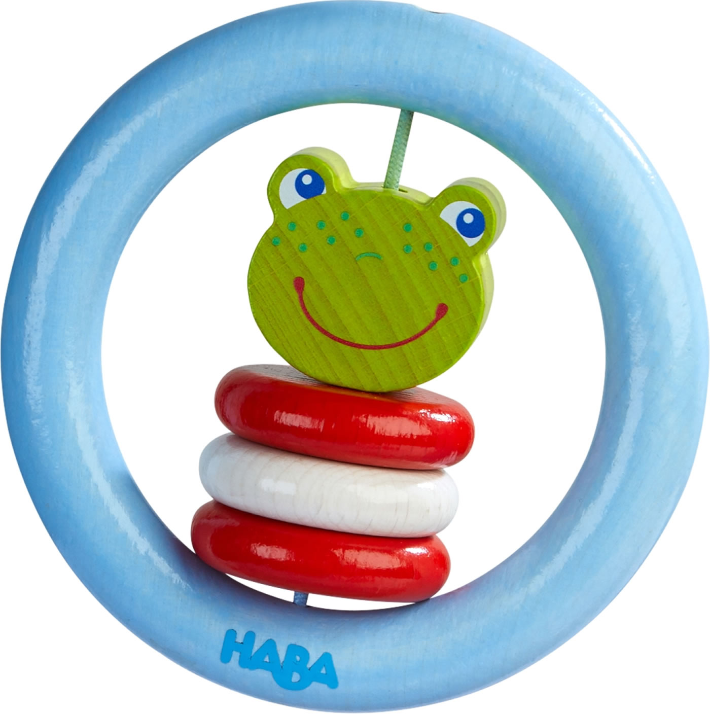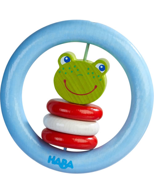 Dieser robuste Holz-Greifling begeistert Babys mit dem niedlichen Froschmotiv und dem lustigen Klappereffekt.