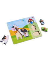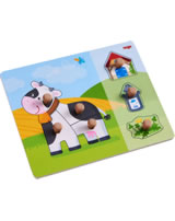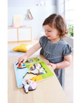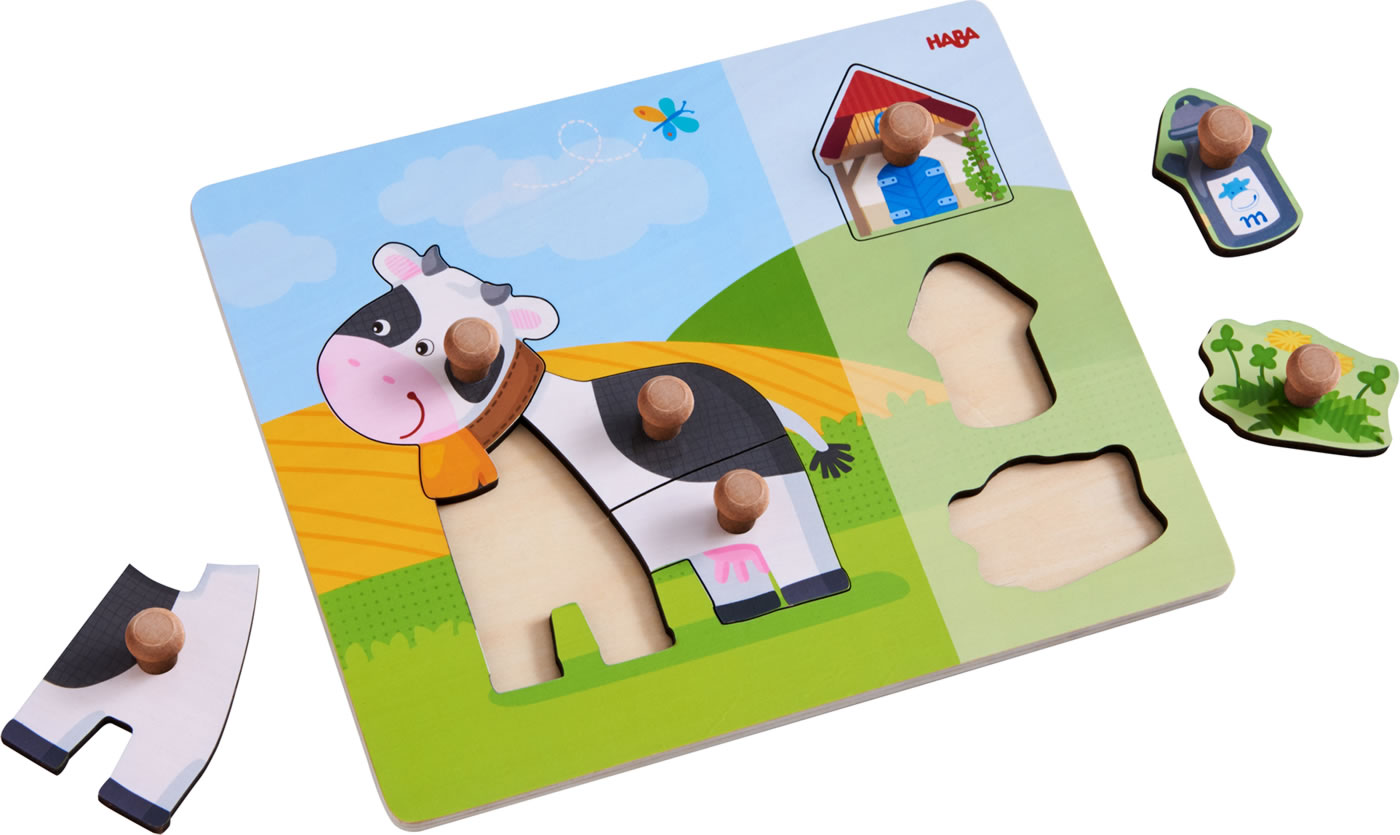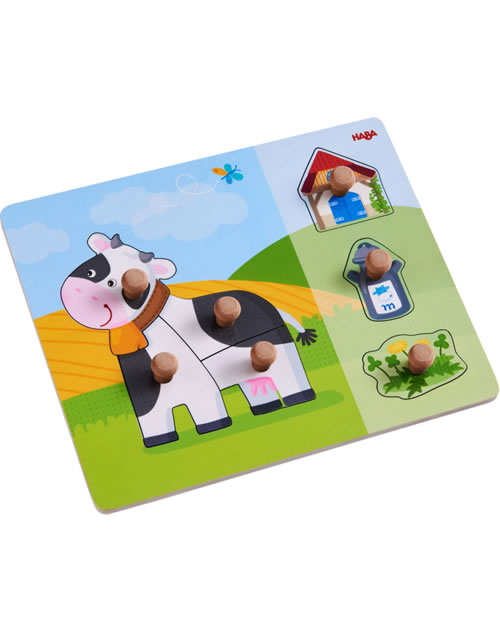 Hier puzzeln kleine Bauernhoffreunde die Kuh Annabell mit gut zu greifenden Puzzleteilen zusammen. Zusätzlich werden Kuhstall, Milchkanne und frisches Gras an die richtige Stelle gesetzt. So können auch die kleinsten das Landleben kennenlernen und haben gemeinsam oder alleine Spaß am Puzzeln.